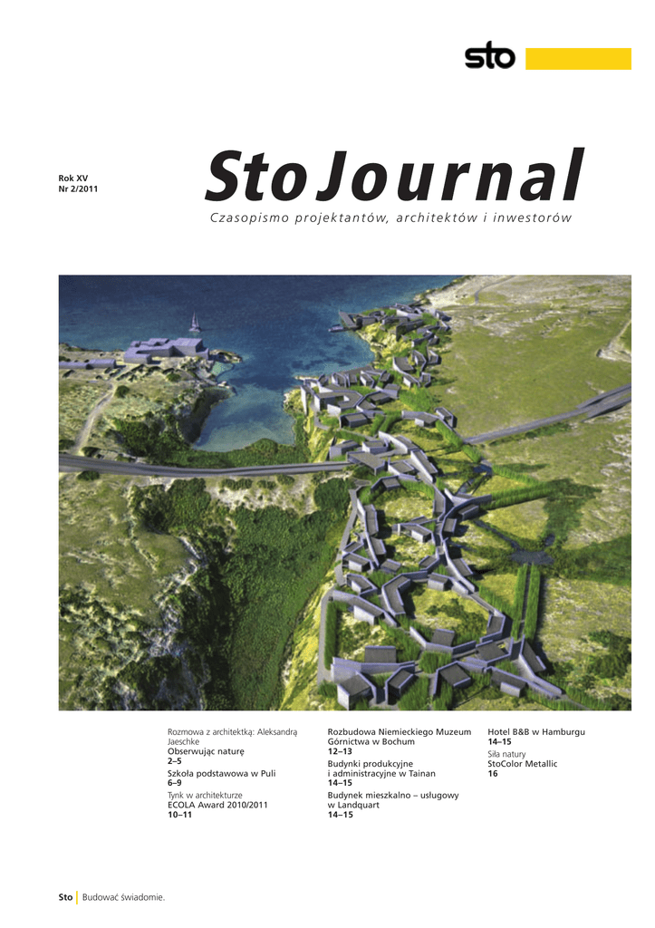 Rok XV Nr 2/2011 C z a s o p i s m o p r o j e k t a n t ó w, a r c h i t e k t ó w i i n w e s t o r ó w Rozmowa z architektką: Aleksandrą Jaeschke Obserwując naturę 2–5 Szkoła podstawowa w Puli 6–9 Tynk w architekturze ECOLA Award 2010/2011 10–11 Sto Budować świadomie. Rozbudowa Niemieckiego Muzeum Górnictwa w Bochum 12–13 Budynki produkcyjne i administracyjne w Tainan 14–15 Budynek mieszkalno – usługowy w Landquart 14–15 Hotel B&B w Hamburgu 14–15 Siła natury StoColor Metallic 16 Rozmowa z architektem Obserwując naturę Z Aleksandrą Jaeschke, współwłaścicielką sycylijskiej pracowni „AION” rozmawia Paweł Wernicki Założona przez Panią i włoskiego architekta Andreę Di Stefano pracownia AION, z siedzibą w Syrakuzach, znalazła się w rankingu 40 under 40. Co zadecydowało o tym wyróżnieniu? – Wedle Europejskiego Centrum Architektury nagroda „przyznawana jest najlepiej zapowiadającym się europejskim talentom w dziedzinie architektury, krajobrazu, urbanistyki i wzornictwa przemysłowego za ich wyjątkowy wkład w wyznaczanie nowych kierunków i osiągnięcia na początku kariery zawodowej”. Myślę, że w naszym przypadku zostało docenione konsekwentne poszukiwanie nowych metod projektowania, łączenie inicjatyw badawczych z codzienną pracą architekta oraz troska o szeroko pojętą ekologię. Ukończyła Pani słynną Architectural Association School of Architecture w Londynie, tę samą, co na przykład Zaha Hadid… – AA to taki ciągle zmieniający się archipelag architektonicznych idei. Za drzwiami poszczególnych pracowni roztaczają się niezależne światy. Niektóre pracownie przypominają warsztat stolarski, inne plan filmowy, plac zabaw, czy też sterylne laboratorium... Z roku na rok odkrywa się coś nowego, nanosi nowy punkt na mapie osobistych eksploracji. Ta podróż kształtuje osobowość – wchodzi w krew na całe życie. Przez AA przewija się mnóstwo bardzo ciekawych profesorów, którzy przynoszą ze sobą doświadczenia zdobyte na innych renomo- Widok z lotu ptaka. Artificial Biotic Corridors, AION 2005 2 StoJournal 2/2011 wanych uczelniach całego świata. Moje studia pod kierunkiem takich profesorów, jak Ciro Najle czy Michael Hensel połączyły mnie niewidzialną nicią z takimi postaciami jak Jeff Kipnis, Jessie Reiser czy też Alejandro Zaera Polo, którzy naznaczyli lata 90-te na Columbia University w Nowym Jorku. Architectural Association to najstarsza na świecie niezależna instytucja kształcąca architektów. Oprócz Zahy Hadid studiowało tu wielu innych słynnych architektów, na przykład Ben van Berkel, Will Alsop, Peter Cook, Richard Rogers, czy wreszcie Rem Koolhaas. Ten ostatni jest dla mnie wyjątkowo ważnym punktem odniesienia, bo to od niego uczyliśmy się postrzegać architekturę jako jeden z elementów złożonego i dynamicznego świata. To wyzwolenie spod dyktatu ideologii i stylu, ale równocześnie wielka odpowiedzialność... Dlaczego wybrała Pani Włochy, a konkretnie Syrakuzy? Jak się tam pracuje? – Właściwie przez przypadek. Po studiach pracowaliśmy trochę w Londynie i w Barcelonie, a potem przenieśliśmy się na południe Włoch, ponieważ dostaliśmy w Syrakuzach kilka dość dużych zleceń. Nadal traktuję ten etap przejściowo. Syrakuzy to tylko baza. Moim marzeniem jest stworzenie pracowni, która dzięki swojemu międzynarodowemu charakterowi będzie w stanie sprostać night club centrum nurkowania sklep nocny miejsce rekreacji teatr ARTIFICIAL BIOTIC CORRIDORS, Eko-miasteczko turystyczne, Projekt badawczy, Syrakuzy, Włochy, AION, 2005 przystań miejsce rekreacji salon fitness i urody taras przebieralnie bar zleceniom w rożnych krajach. Mieliśmy szczęście spotkać tu bardzo odważnych inwestorów, którzy potrafili docenić rolę architektury, ale Włochy nie są rajem ani dla przedsiębiorców, ani dla architektów. Panuje tu niezdrowa konkurencja i zaniżane są stawki. Brakuje stabilizacji prawno-ekonomicznej, ciążą biurokracja i korupcja, ciężko poruszać się wśród ruin, wykopalisk i zabytków. Czym jest architektura? Co jest najważniejsze w zawodzie architekta? – Architektura to organizacja życia w przestrzeni. Odbywa się to przy użyciu kosztownej materii! To wielka odpowiedzialność społeczna i ekologiczna! W naszej pracy przede wszystkim organizujemy - kanalizujemy, łączymy, dzielimy, przybliżamy, oddalamy. Tworzymy związki pomiędzy wielorakimi procesami, które składają się na to, co nas otacza. Niektóre elementy organizuje się łatwiej, inne trudniej, niektóre są bardzo konkretne i powoli ulegają zmianom, inne są ulotne i szybko ewoluują. Najważniejsze jest zrozumieć i opisać choć część tego co nas otacza, aby móc wprowadzić w ten pozorny chaos nowy i lepszy porządek. Dlatego bardzo ważne są narzędzia pracy oraz współpraca ze specjalistami z innych dziedzin. przystanek tramwajowy kort tenisowy parking restauracja przystanek tramwajowy parking bar recepcja biuro przebieralnie lobby warsztat i sklep basen lobby bar basen salon fitness i urody Ogólny plan zagospodarowania eko-miasteczka turystycznego. Artificial Biotic Corridors, AION 2005 Architektura to tworzenie nowych ekologii, ale jednocześnie żmudne rzemiosło. Sztuką jest pozytywnie zmieniać otaczające nas środowisko, tworzyć nowe zależności społeczne i zmieniać stereotypy kulturowe, brawurowo przy tym panując nad materią i jej formą. To olbrzymie wyzwanie! Co jest dla Pani inspiracją przy projektowaniu? – Wszystko, co ma jakiś porządek i spełnia jakaś funkcję. Interesuje nas złożoność i dynamika zjawisk zachodzących w naturze tak samo, jak działanie wymyślonych przez człowieka systemów. My wszystko obserwujemy – zwierzęta, rośliny, materiały, maszyny – fascynuje nas wszystko to, co może nam podsunąć podpowiedź – od szkieletu uschniętego liścia po geologiczne formacje. Czasem łapię się na tym
