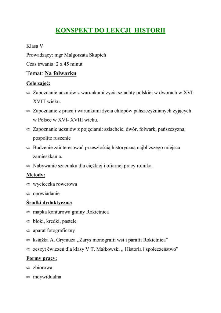 KONSPEKT DO LEKCJI HISTORII