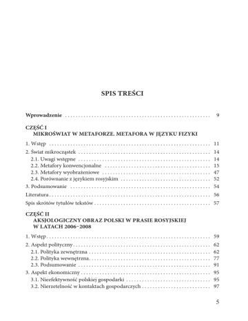 Spis treści Wprowadzenie . . . . . . . . . . . . . . . . . . . . . . . . . . . . . . . . . . . . . . . . . . . . . . . . . . . . . . . . 9 CZĘŚĆ I MIKROŚWIAT W METAFORZE. METAFORA W JĘZYKU FIZYKI 1. Wstęp . . . . . . . . . . . . . . . . . . . . . . . . . . . . . . . . . . . . . . . . . . . . . . . . . . . . . . . . . . . . . . 11 2. Świat mikrocząstek . . . . . . . . . . . . . . . . . . . . . . . . . . . . . . . . . . . . . . . . . . . . . . . . . . . 2.1. Uwagi wstępne . . . . . . . . . . . . . . . . . . . . . . . . . . . . . . . . . . . . . . . . . . . . . . . . . . . 2.2. Metafory konwencjonalne . . . . . . . . . . . . . . . . . . . . . . . . . . . . . . . . . . . . . . . . . 2.3. Metafory wyobrażeniowe . . . . . . . . . . . . . . . . . . . . . . . . . . . . . . . . . . . . . . . . . . 2.4. Porównanie z językiem rosyjskim . . . . . . . . . . . . . . . . . . . . . . . . . . . . . . . . . . . 3. Podsumowanie . . . . . . . . . . . . . . . . . . . . . . . . . . . . . . . . . . . . . . . . . . . . . . . . . . . . . . 14 14 15 47 52 54 Literatura. . . . . . . . . . . . . . . . . . . . . . . . . . . . . . . . . . . . . . . . . . . . . . . . . . . . . . . . . . . . . . 56 Spis skrótów tytułów tekstów. . . . . . . . . . . . . . . . . . . . . . . . . . . . . . . . . . . . . . . . . . . . . 57 Сzęść II aksjologiczny obraz polski w prasie rosyjskiej w latach 2006–2008 1. Wstęp. . . . . . . . . . . . . . . . . . . . . . . . . . . . . . . . . . . . . . . . . . . . . . . . . . . . . . . . . . . . . . . 59 2. Aspekt polityczny. . . . . . . . . . . . . . . . . . . . . . . . . . . . . . . . . . . . . . . . . . . . . . . . . . . . . 2.1. Polityka zewnętrzna. . . . . . . . . . . . . . . . . . . . . . . . . . . . . . . . . . . . . . . . . . . . . . . 2.2. Polityka wewnętrzna. . . . . . . . . . . . . . . . . . . . . . . . . . . . . . . . . . . . . . . . . . . . . . . 2.3. Podsumowanie . . . . . . . . . . . . . . . . . . . . . . . . . . . . . . . . . . . . . . . . . . . . . . . . . . . 3. Aspekt ekonomiczny. . . . . . . . . . . . . . . . . . . . . . . . . . . . . . . . . . . . . . . . . . . . . . . . . . 3.1. Nieefektywność polskiej gospodarki . . . . . . . . . . . . . . . . . . . . . . . . . . . . . . . . . 3.2. Nierzetelność w kontaktach gospodarczych. . . . . . . . . . . . . . . . . . . . . . . . . . . 62 62 77 91 95 95 97 5 Spis treści 3.3. Stosunki gospodarcze z Rosją. . . . . . . . . . . . . . . . . . . . . . . . . . . . . . . . . . . . . 3.4. Podsumowanie . . . . . . . . . . . . . . . . . . . . . . . . . . . . . . . . . . . . . . . . . . . . . . . . . . 4. Aspekt religijny. . . . . . . . . . . . . . . . . . . . . . . . . . . . . . . . . . . . . . . . . . . . . . . . . . . . . . 4.1. Niski poziom moralny duchownych. . . . . . . . . . . . . . . . . . . . . . . . . . . . . . . . 4.2. Złe stosunki między polskim Kościołem Katolickim a Prawosławną Cerkwią. . . . . . . . . . . . . . . . . . . . . . . . . . . . . . . . . . . . . . . . . . . . 4.3. Krytyka polskiego Papieża. . . . . . . . . . . . . . . . . . . . . . . . . . . . . . . . . . . . . . . . . 4.4. Podsumowanie . . . . . . . . . . . . . . . . . . . . . . . . . . . . . . . . . . . . . . . . . . . . . . . . . . 5. Aspekt kulturowy . . . . . . . . . . . . . . . . . . . . . . . . . . . . . . . . . . . . . . . . . . . . . . . . . . . 98 104 106 106 108 109 113 114 6. Sport . . . . . . . . . . . . . . . . . . . . . . . . . . . . . . . . . . . . . . . . . . . . . . . . . . . . . . . . . . . . . . 117 7. Zakończenie . . . . . . . . . . . . . . . . . . . . . . . . . . . . . . . . . . . . . . . . . . . . . . . . . . . . . . . . 120 Literatura. . . . . . . . . . . . . . . . . . . . . . . . . . . . . . . . . . . . . . . . . . . . . . . . . . . . . . . . . . . . . 122 Spis skrótów tytułów czasopism. . . . . . . . . . . . . . . . . . . . . . . . . . . . . . . . . . . . . . . . . . 123 Сzęść III Czatusie przy kompie, czyli o języku czatu polskiego i rosyjskiego 1. Wstęp. . . . . . . . . . . . . . . . . . . . . . . . . . . . . . . . . . . . . . . . . . . . . . . . . . . . . . . . . . . . . . 125 2. Nicki. . . . . . . . . . . . . . . . . . . . . . . . . . . . . . . . . . . . . . . . . . . . . . . . . . . . . . . . . . . . . . . 2.1. Typy nicków. . . . . . . . . . . . . . . . . . . . . . . . . . . . . . . . . . . . . . . . . . . . . . . . . . . . . 2.2. Pisownia nicków. . . . . . . . . . . . . . . . . . . . . . . . . . . . . . . . . . . . . . . . . . . . . . . . . 3. Ekonomia środków językowych. . . . . . . . . . . . . . . . . . . . . . . . . . . . . . . . . . . . . . . . 3.1. Oszczędnościowe strategie fonetyczne. . . . . . . . . . . . . . . . . . . . . . . . . . . . . . . 3.2. Ucięcie wyrazu. . . . . . . . . . . . . . . . . . . . . . . . . . . . . . . . . . . . . . . . . . . . . . . . . . . 3.3. Akronimy. . . . . . . . . . . . . . . . . . . . . . . . . . . . . . . . . . . . . . . . . . . . . . . . . . . . . . . 3.4. Forma zdań . . . . . . . . . . . . . . . . . . . . . . . . . . . . . . . . . . . . . . . . . . . . . . . . . . . . . 3.5. Kondensacja. . . . . . . . . . . . . . . . . . . . . . . . . . . . . . . . . . . . . . . . . . . . . . . . . . . . . 3.6. Gotowe wyrażenia. . . . . . . . . . . . . . . . . . . . . . . . . . . . . . . . . . . . . . . . . . . . . . . . 4. Zapożyczenia z języka angielskiego. . . . . . . . . . . . . . . . . . . . . . . . . . . . . . . . . . . . . 4.1. Klasyfikacja zapożyczeń. . . . . . . . . . . . . . . . . . . . . . . . . . . . . . . . . . . . . . . . . . 4.2. Anglicyzmy nieprzyswojone. . . . . . . . . . . . . . . . . . . . . . . . . . . . . . . . . . . . . . . 4.3. Odmiana anglicyzmów. . . . . . . . . . . . . . . . . . . . . . . . . . . . . . . . . . . . . . . . . . . . 4.4. Powstawanie wyrazów pochodnych. . . . . . . . . . . . . . . . . . . . . . . . . . . . . . . . . 5. Funkcja emotywna. . . . . . . . . . . . . . . . . . . . . . . . . . . . . . . . . . . . . . . . . 