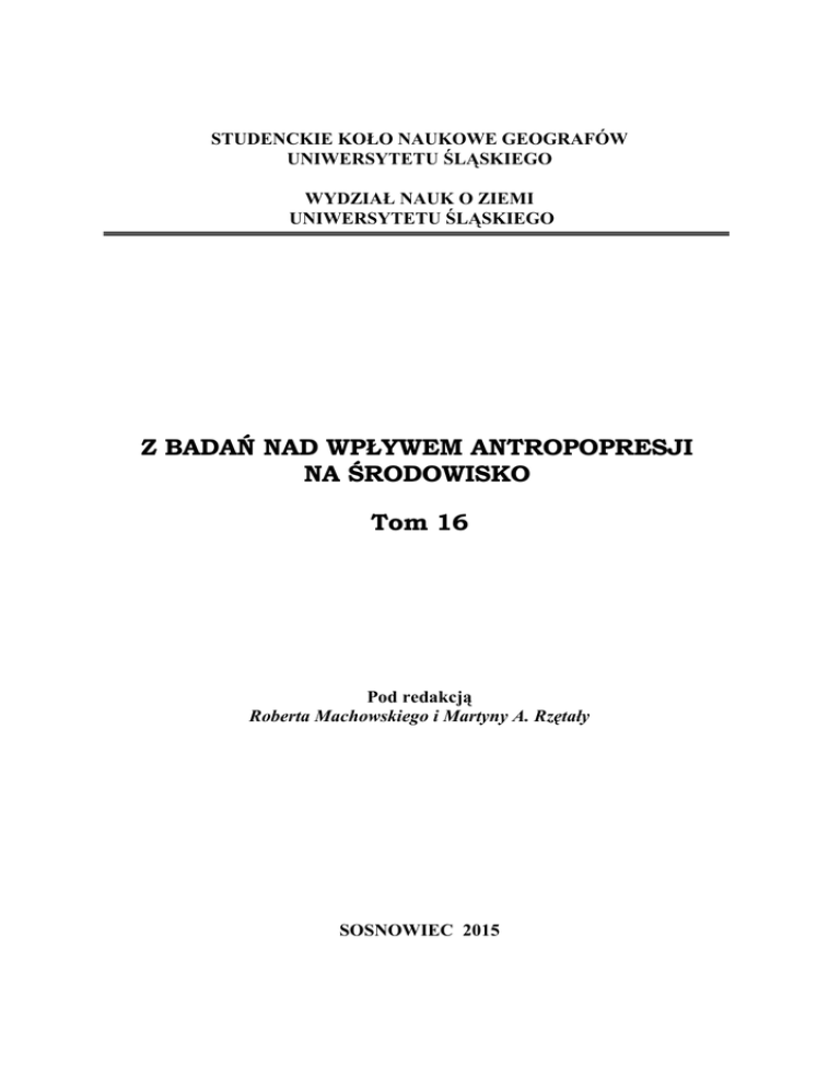 Copyright © 2015 by Wydział Nauk o Ziemi Uniwersytetu Śląskiego