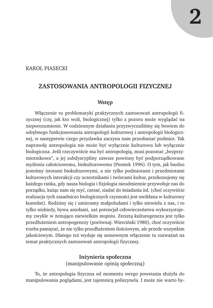 2 Karol Piasecki Zastosowania antropologii fizycznej Wstęp Włączenie tu problematyki praktycznych zastosowań antropologii fizycznej (czy, jak kto woli, biologicznej) tylko z pozoru może wyglądać na nieporozumienie. W codziennym działaniu przyzwyczailiśmy się bowiem do odrębnego funkcjonowania antropologii kulturowej i antropologii biologicznej, w następstwie czego przydawka zaczyna nam przesłaniać podmiot. Tak naprawdę antropologia nie może być wyłącznie kulturowa lub wyłącznie biologiczna. Jeśli rzeczywiście ma być antropologią, musi pozostać „bezprzymiotnikowa”, a jej subdyscypliny zawsze powinny być podporządkowane myśleniu całościowemu, biokulturowemu (Piontek 1996). O tym, jak bardzo jesteśmy istotami biokulturowymi, a nie tylko podmiotami i przedmiotami kulturowych interakcji czy uczestnikami i twórcami kultur, przekonujemy się każdego ranka, gdy nasza biologia i fizjologia nieodmiennie przywołuje nas do porządku, każąc nam się myć, czesać, siadać do śniadania itd. (choć oczywiście realizacja tych zasadniczo biologicznych czynności jest uwikłana w kulturowy kontekst). Rodzimy się i umieramy małpoludami i tylko niewielu z nas, i to tylko niekiedy, bywa aniołami, zaś potencjał człowieczeństwa wykorzystujemy zwykle w żenująco niewielkim stopniu. Zresztą kulturogeneza jest tylko przedłużeniem antropogenezy (porównaj: Wierciński 1980), choć oczywiście trzeba pamiętać, że nie tylko przedłużeniem ilościowym, ale przede wszystkim jakościowym. Dlatego też wydaje się sensownym włączenie tu rozważań na temat praktycznych zastosowań antropologii fizycznej. Inżynieria społeczna (manipulowanie opinią społeczną) To, że antropologia fizyczna od momentu swego powstania służyła do manipulowania poglądami, jest tajemnicą poliszynela. I może nie warto by- 56 Karol Piasecki łoby o tym mówić, gdyby nie to, że obecnie bardziej niż kiedykolwiek opinia naukowców używana jest jako argument w działaniach medialnych. Dziś nie sposób sprzedać pasty do zębów bez pokazywania stomatologów, zachwycających się nowym produktem farmaceutów i z uczoną miną, w białym fartuchu udowadniającym przy pomocy komputerowych makiet, którędy droga do szczęścia. Jak wiadomo, mity żyją własnym życiem. Naukowe także. Więc jeśli w dobie wszechwładzy mediów stworzymy mit mający pozory naukowości, będziemy go mogli dalej wykorzystywać do woli. I dlatego w działaniach społecznych manipulowanie antropologią jest tak częste. Wynika to stąd, iż potrzeba posiadania uogólnionego modelu świata jest jedną z najważniejszych ludzkich potrzeb (Wierciński 1989) i musi być bezwzględnie zaspokojona. We współczesnym świecie ranga wiedzy naukowej, przynajmniej nominalnie, jest bardzo wysoka, stąd też wykorzystanie antropologii fizycznej, a zwłaszcza jej najnowszych odkryć paleontologicznych, do sterowania ludźmi i do budowania modelu świata zgodnego z obowiązującymi paradygmatami pozytywistycznego myślenia, wzmocnionymi ogarniającą wszystkie prawie dziedziny życia społecznego poprawnością polityczną, jest z punktu widzenia elit rządzących czymś zupełnie naturalnym. Wrzucanie kamyczków do własnego ogródka w każdej dziedzinie nauki traktowane jest zazwyczaj jako działalność szkodliwa, wręcz „kalanie własnego gniazda”. Ale amicus Plato.... Dlatego też na początek zaczniemy od sprawy wstydliwej, to jest od przypomnienia tego, jak antropologia fizyczna (oczywiście nie ona sama, a ci, którzy się nią zajmują) pozwoliła sobie na społeczno-polityczne sprostytuowanie. Świadomie używam tego słowa i jest to najlżejsze określenie, jakie mi przychodzi na myśl. Chodzi tu przede wszystkim o naukowe podstawy niechęci i wrogości do obcych, które uwarunkowane są biologicznie, a następnie silnie modyfikowane kulturowo (najczęściej, niestety, wzmacniane). Owa niechęć do kolegów z drugiego podwórka, sąsiedniej ulic, wsi, przeradza się i sublimuje w zwierzęcy, czysto biologiczny, a potem już kulturowy rasizm. I choć relacja „swój-obcy” ma charakter niezmiernie ważnego i powszechnie używanego stereotypu poznawczego, a więc jest adaptacyjnie korzystna zarówno osobniczo, jak i grupowo, to wzmocniona ideologicznie może stać się z punktu widzenia gatunku, populacji czy też kultury (etnosu) niebezpiecznym obciążeniem, jak tego dowodzi (choć nie uczy) historia. Idea antropologii jako broni (w pewnym sensie biologicznej) znana była od wieków, ale dopiero miniony wiek pokazał, że nie tylko naukowcy wymyślający dynamit czy rozszczepienie jądra atomowego mogą być wynalazcami śmiercionośnej broni. Mogą nimi być także antropolodzy! Zastosowania antropologii fizycznej 57 Proste obserwacje różnic międzyosobniczych i międzypopulacyjnych (międzygrupowych) musiały mieć miejsce już w początkach istnienia naszego gatunku. Są one zresztą zachowaniami podludzkimi, obecnymi u większości zwierząt, choć tam rozpoznanie swojego od obcego realizowane jest głównie na drodze chemicznej, poprzez zmysł zapachu1. Obserwacje takich różnic potwierdzają górnopaleolityczne rysunki naskalne i znaleziska archeologiczne. Doprowadziły one do utrwalenia stereotypów poznawczych i zachowaniowych (behawioralnych), iż przedstawiciele obcych grup (subetnosów, etnosów, plemion, narodów) wyraźnie różnią się od nas biokulturowo. Podkreślanie tu biokulturowego ich charakteru wynika z kompleksowości, a nie prostego dodawania różnic budowy fizycznej i różnic kulturowych. Tylko z pozoru różnice w stroju i zachowaniu (mowie, obyczajach, gestykulacji etc.) jedynie nakładają się na różnice w budowie biologicznej, takie jak barwa skóry, oczu i włosów, kształt głowy i twarzy oraz ich elementów, wreszcie wysokość ciała i jego proporcje. W rzeczywistości każda z tradycyjnych kultur jest mniej lub bardziej uwikłana w związki ze swym śro