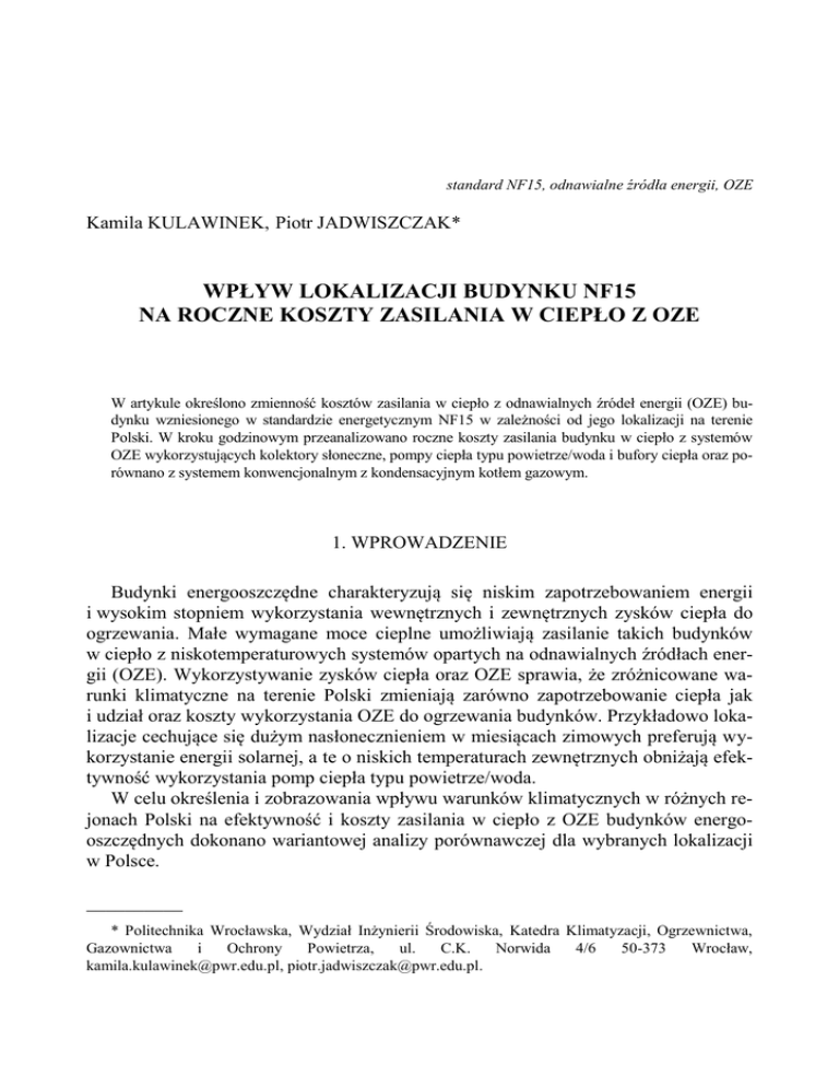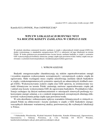 Wpływ lokalizacji budynku NF15 na roczne koszty - Eko-DOk