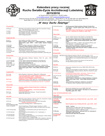 Kalendarz pracy - Ruch Światło-Życie Archidiecezji Lubelskiej