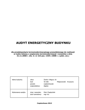 1. Strona tytułowa audytu energetycznego budynku