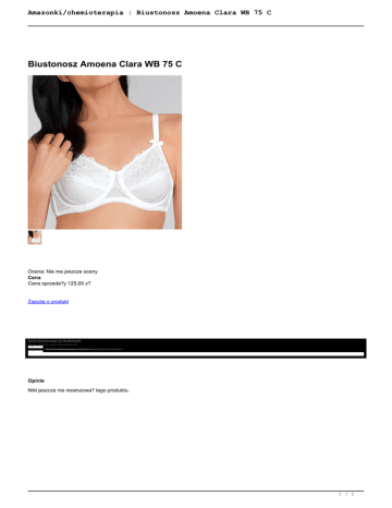 Amazonki/chemioterapia : Biustonosz Amoena Clara WB 75 C Biustonosz Amoena Clara WB 75 C Ocena: Nie ma jeszcze oceny Cena Cena sprzeda?y 125,00 z? Zapytaj o produkt Karla biustonosz na fiszbinach Opis Delikatny biustonosz, uszyty z dekoracyjnej koronki. Koronka ?atwo Rami?czka Obustronne biustonosz posiada ma spaghetti tiulowe ci?te dopasowuje boczne kieszonki i regulowane zszywane wstawki, si? do miseczki i elastyczne kszta?tu które gwarantuj? biustu. z urzekaj?cymi swobod? ma?ymi poruszania kokardkami. si?. Opinie Nikt jeszcze nie recenzowa? tego produktu. 1 / 1 Powered by TCPDF (www.tcpdf.org)