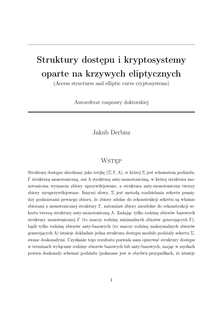 eliptycznych nad ciałem skończonym, dedykowanych dla dowolnej monotonicznej struktury dostępu. Konstrukcje te oparte są na iloczynie dwuliniowym na krzywej eliptycznej