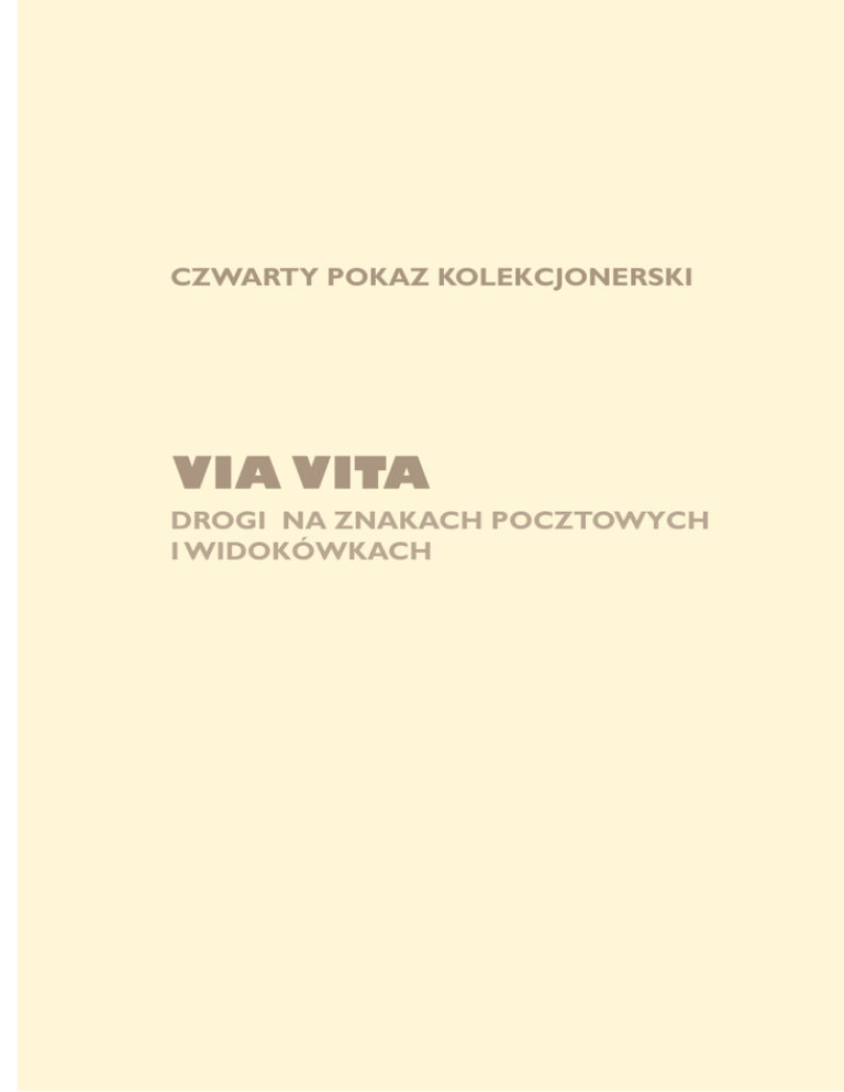 CZWARTY POKAZ KOLEKCJONERSKI VIA VITA DROGI NA ZNAKACH POCZTOWYCH I WIDOKÓWKACH 1 Wydawca Muzeum Inżynierii Miejskiej w Krakowie Kurator wystawy Jerzy Duda Autor tekstu Jerzy Duda Skład przewodnika Beata Krzaczyńska Autorzy wystawy zapraszają serdecznie do jej obejrzenia wszystkich, którym hasło droga kojarzy się zarówno z budowlą jak i symbolem. Witamy profesjonalistów, czyli inżynierów i techników budowy dróg i ulic. Witamy równie gorąco użytkowników dróg, dla których droga to tylko „maszyna do przenoszenia ruchu pojazdów”, ale i innych użytkowników, którzy drogę traktują nieco bardziej sentymentalnie. Będziemy wdzięczni za odwiedzenie naszej wystawy osobom zainteresowanym historią, socjologią, podróżami, a nawet kolekcjonerom. Nic nie stoi na przeszkodzie, aby wystawę zwiedzili „czciciele” autostrad, ale również pasjonaci ścieżek, wielbiciele dróżek i wiejskich gościńców. „Wszystkich zapraszamy i na progu witamy”. Każdego zwiedzającego czeka niespodzianka przed wejściem na salę wystawową. Autorzy wystawy proponują bowiem spacer, może raczej podróż drogą, która, liczy sobie nie mniej nie więcej jak tylko 5244 kilometrów. Na pocieszenie zwiedzających podajemy, że jest to rzeczywiście tylko spacer i to na trasie o długości trzech metrów.Wszystko za sprawą najbardziej zaskakującego wydawnictwa przygotowanego przez pocztę Argentyny w 2007 roku. Jest to seria 11 znaczków, emitowanych z okazji stulecia turystyki w Argentynie. Jak na tematykę drogową przystało, znaczki ułożone są w pasku długim na 49,5 cm, z szerokimi marginesami od góry i od dołu. Całość ma charakter reklamy turystyki zachęcającej do poznania zarówno drogi, oznaczonej nr 40, jak i okolic, przez które prowadzi jej trasa. Całe wydawnictwo jest formą przewodnika po trasie z informacjami o obiektach i terenach wartych obejrzenia. A jest co oglądać i czym interesować się na trasie o długości 5244 km, przebiegającej przez Muzeum Inżynierii Miejskiej 31-060 Kraków, ul. św. Wawrzyńca 15 tel/fax: 12 421-12-42 e-mail: [email protected] www.mimk.com.pl Kraków 2015 2 3 najciekawsze pod względem krajobrazu, stref klimatycznych, flory i fauny, i obiektów zabytkowych tereny Argentyny. Dla ułatwienia zwiedzania trasy zrobiliśmy powiększenie prezentowane przed salą wystawową. Proponujemy zapoznanie się z kolejnymi fragmentami wspomnianego wydawnictwa pocztowego, które zawiera podstawowe wiadomości dla podróżnika i drogowca. Informacje dotyczą m. in.: nazw kolejnych miejscowości z podaniem kilometrażu, począwszy od Cabo Virgenes (km 0+000), leżącego na południu kraju, a także nazw prowincji (np. Santa Cruz, Chubut, Rio Negro), przez które przebiega droga; rodzaju nawierzchni drogi w podziale na nawierzchnie gruntowe i bitumiczne; profilu pionowego trasy z oznaczeniem charakterystycznych punktów wysokości, na których znajduje się droga (najwyższy punkt to 3442 m znajdujący się na końcowym odcinku trasy pomiędzy Tafna i La Quiaca). Profil obejmuje także, oznaczone różnymi kolorami, wzniesienia i góry widoczne z drogi z podaniem ich wysokości. Zaznaczono, w wybranych punktach, wysokość opadów rocznych (np. Malargue 310 mm/rok). Oznaczono punktami miejsca o szczególnym znaczeniu dla turysty, jeziora, rezerwaty i zabytki. To wszystko znalazło się na dolnym marginesie. Górny margines służy do podania krótkiego opisu prowincji i ich atrakcji turystycznych, nawet z podaniem gatunków zwierząt i ptaków występujących najczęściej na danym obszarze. Wspomniana emisja poczty Argentyny jest unikatowa w swoim rodzaju, pomimo tego, że temat drogi na znaczkach pocztowych staje się z roku na rok ciekawszy zarówno pod względem doboru problematyki jak i rozwiązań graficznych. VIA APPIA - plansza pierwsza i gabloty po lewej stronie sali z lat 30-tych XX wieku w zestawieniu z rysunkową wizją tej części drogi i jej otoczenia z I wieku p.n.e. Cesarstwo Rzymskie przez wiele wieków było niedościgłym wzorem dbałości o drogi. Kolejni jego władcy zbudowali na ziemiach swojego imperium, które sięgało od Afryki po Wyspy Brytyjskie, od Hiszpanii po Indie, sieć doskonałych dróg wzbudzających uznanie do dzisiaj ze względu na wybór tras przebiegu i techniki wykonania. Królową dróg (Regina Viarum) była i pozostała Via Appia, zbudowana ok. 312 r. p.n.e. przez Appiusza Klaudiusza Cekusa. Łączyła Rzym z Kapuą, później została w latach 270-225 p.n.e. przedłużona do Tarentu i Brundyzium, portu ważnego dla komunikacji z Grecją i Wschodem. Drogi rzymskie doczekały się prezentacji na kilku znaczkach pocztowych wydanych przez pocztę Włoch za czasów Benito Mussoliniego. Propagandowym znaczkiem dotyczącym budowy dróg jest wydany w 1932 roku z okazji 10. rocznicy marszu na Rzym znaczek przedstawiający słup milowy z napisem Via Appia oraz nazwami innych dróg. Hasło pod częścią ilustracyjną, brzmi: „Nowe drogi dla nowych legionów”. W tej samej serii znaczków lotniczy znaczek prezentuje schematycznie kamienną nawierzchnie drogi rzymskiej. Podobnie na znaczku wartości 75 cent. znajduje się widok fragmentu nawierzchni wyłożonej kamiennym brukiem, a napis głosi, że jest to „odkopywanie ruin”. Kolejne znaczki to seria wydana przez pocztę Włoch w 1933 roku, prezentująca zeppelina nad zabytkowymi budowlami Rzymu. Wśród nich jest znaczek z zeppelinem nad Via Appią w pobliżu grobowca Cecyli Metelii. Zarówno grobowiec jak i otoczenie są najczęściej reprodukowanym fragmentem drogi, który został także powtórzony na znaczku wydanym w 1984 roku przez pocztę Włoch z okazji Na planszy i w dwóch gablotach znajdują się kolekcjonerskie materiały dotyczące drogi, która do dzisiaj pobudza wyobraźnie wielu ludzi, na temat której współcześnie ukazują się publikacje i która jest stałym punktem wycieczek do Wiecznego Miasta. Jest to Via Appia pokazywana na