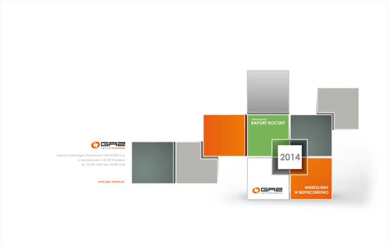 ZINTEGROWANY RAPORT ROCZNY Operator Gazociągów Przesyłowych GAZ-SYSTEM S.A. ul. Mszczonowska 4, 02-337 Warszawa 2014 tel.: 22 220 18 00, faks: 22 220 16 06 www.gaz-system.pl INWESTUJEMY W BEZPIECZEŃSTWO SPIS TREŚCI Kalendarium 2014.....02 List Przewodniczącego Rady Nadzorczej.....03 List Prezesa Zarządu.....04 Rozdział 1 – Firma.....06 Rozdział 2 – Klient.....52 Rozdział 3 – Infrastruktura.....70 Rozdział 4 – Społeczność lokalna.....98 Rozdział 5 – Informacje o raporcie.....110 Tabela wskaźników.....117 Kontakt.....124 RAPORT ROCZNY 2014 01 24 stycznia 7 lutego 28 lutego zatwierdzenie nowej Instrukcji Ruchu i Eksploatacji Sieci Przesyłowej dla polskiego odcinka Systemu Gazociągów Tranzytowych (SGT) Jamał-Europa przeprowadzenie pilotażowej aukcji przepustowości powiązanej w międzysystemowym punkcie Mallnow 11 kwietnia porozumienie z operatorem ukraińskiego systemu przesyłowego Public Joint Stock Company (PJSC) „UKRTRANSGAZ” o zasadach alokacji paliwa gazowego w punkcie wyjścia z systemu przesyłowego Hermanowice w kierunku Ukrainy 30 kwietnia rozpoczęcie konsultacji nowej Instrukcji Ruchu i Eksploatacji Sieci Przesyłowej 19 maja publikacja Regionalnego Planu Inwestycyjnego dla regionu Europy ŚrodkowoWschodniej na lata 2014-2023 20 maja publikacja Regionalnego Planu Inwestycyjnego dla regionu Morza Bałtyckiego na lata 2014-2023 22 maja 12 czerwca przystąpienie do Towarowej Giełdy Energii podpisanie z operatorem czeskiego systemu przesyłowego NET4GAS porozumienia dotyczącego przeprowadzenia pilotażowej aukcji produktu powiązanego w punkcie Cieszyn na nowej platformie GAZ-SYSTEM Aukcje (GSA) podpisanie z Europejskim Bankiem Inwestycyjnym umowy na finansowanie gazociągu Lwówek – Odolanów 12 czerwca uzyskanie pozwolenia na użytkowanie dla gazociągu Świnoujście – Szczecin 24 czerwca zatwierdzenie „Taryfy dla usług przesyłania paliw gazowych nr 8” 18 lipca podpisanie porozumienia o współpracy z Urzędem Dozoru Technicznego w obszarze bezpieczeństwa technicznego systemu gazociągów przesyłowych w Polsce 21 lipca przeprowadzenie pierwszych aukcji przepustowości na platformie GAZ-SYSTEM Aukcje 30 lipca zatwierdzenie nowej Instrukcji Ruchu i Eksploatacji Sieci Przesyłowej przez Prezesa URE 23 września przyznanie przez Prezesa URE certyfikatu spełnienia kryteriów niezależności w związku z wykonywaniem funkcji operatora systemu przesyłowego na sieciach własnych 30 września wdrożenie „Kodeksu postępowania dla Dostawców” 19 listopada 3 grudnia 17 grudnia 2014 LIST PRZEWODNICZĄCEGO RADY NADZORCZEJ Szanowni Państwo, 17 czerwca 29 października 02 uruchomienie Rynku Usług Bilansujących zakwalifikowanie do dofinansowania z Connecting Europe Facility (CEF „Łącząc Europę”) połączeń Polska – Litwa, Polska – Czechy i Polska – Słowacja uzyskanie pozwolenia na użytkowanie dla gazociągu Gustorzyn-Odolanów po raz kolejny w imieniu Rady Nadzorczej mam przyjemność przedstawić Państwu zintegrowany raport roczny Operatora Gazociągów Przesyłowych GAZ-SYSTEM S.A. Miniony rok był dla firmy pracowity – spółka zrealizowała i finansowała wiele projektów inwestycyjnych, ale dzięki efektywnemu zarządzaniu finansami uzyskała także zysk netto na poziomie 404 mln zł. W 2014 r. GAZ-SYSTEM S.A. umocnił pozycję lidera wśród operatorów przesyłowych Europy Środkowej poprzez realizację ambitnego planu inwestycyjnego m. in. w zakresie stworzenia nowych możliwości importu gazu do Polski poprzez uruchomienie fizycznego rewersu na gazociągu jamalskim. Dzięki temu spółka zapewniła znaczący wzrost bezpieczeństwa dostaw gazu do Polski i stworzyła techniczne możliwości zakupu gazu przez firmy na rynku europejskim po konkurencyjnej cenie. Aktualny bilans konsekwentnie realizowanego przez spółkę od 2009 r. programu inwestycyjnego to ponad 1200 km wybudowanych gazociągów i wzrost technicznych możliwości importu gazu do Polski z kierunku innego niż wschodni do 90%. Firma stale prowadzi dialog z interesariuszami i partnerami, dba o dobre relacje z nimi oraz wspiera rozwój gospodarczy regionów, w których prowadzi swoje inwestycje. potwierdzenie dofinansowania z Programu Operacyjnego Infrastruktura i Środowisko dla projektu „Modernizacja systemu przesyłowego na Dolnym Śląsku w celu poprawy jego funkcjonalności oraz optymalnego wykorzystania połączenia Polska – Niemcy” Aktywność spółki na forum europejskim przełożyła się na nadanie przez Komisję Europejską nowym inwestycjom GAZ-SYSTEM S.A. statusu projektów o znaczeniu wspólnotowym i zakwalifikowanie nowych połączeń transgranicznych do wsparcia ze środków unijnych. podpisanie porozumienia o współpracy z PJSC "UKRTRANSGAZ" ustalającego zasady współpracy w zakresie analiz związanych z inwestycjami niezbędnymi do rozwoju transgranicznych zdolności przesyłowych pomiędzy Polską i Ukrainą W ciągu kliku ostatnich lat GAZ-SYSTEM S.A. zbudował pozycję stabilnej i odpowiedzialnej firmy, która docenia zaangażowanie i wiedzę swoich pracowników. Dzięki kompetencjom zatrudnionej kadry możliwe jest szybkie i efektywne realizowanie celów biznesowych spółki. Raport, do którego lektury zachęcam, został po raz czwarty przygotowany zgodnie z międzynarodowymi wytycznymi Global Reporting Initiative (GRI). Świadczy to o rzetelnym podejściu spółki do realizacji strategii biznesowej oraz transparentności prowadzonych działań. GAZ-SYSTEM S.A. jest spółką, która kompleksowo informuje o wpływie ekonomicznym, społecznym i środowiskowym, jaki wywiera na otoczenie. Jestem przekonany, że zaprezentowane w raporcie wyniki finansowe i pozafinansowe spółki, a także opisane projekty w zakresie bezpiecznego przesyłu gazu spotkają się z Państwa uznaniem. Zapraszam do lektury, Jerzy Molak Przewodniczący Rady Nadzorczej KALENDARIUM RAPORT ROCZNY 2014 03 naszego systemu przesyłowego pozwalają w p