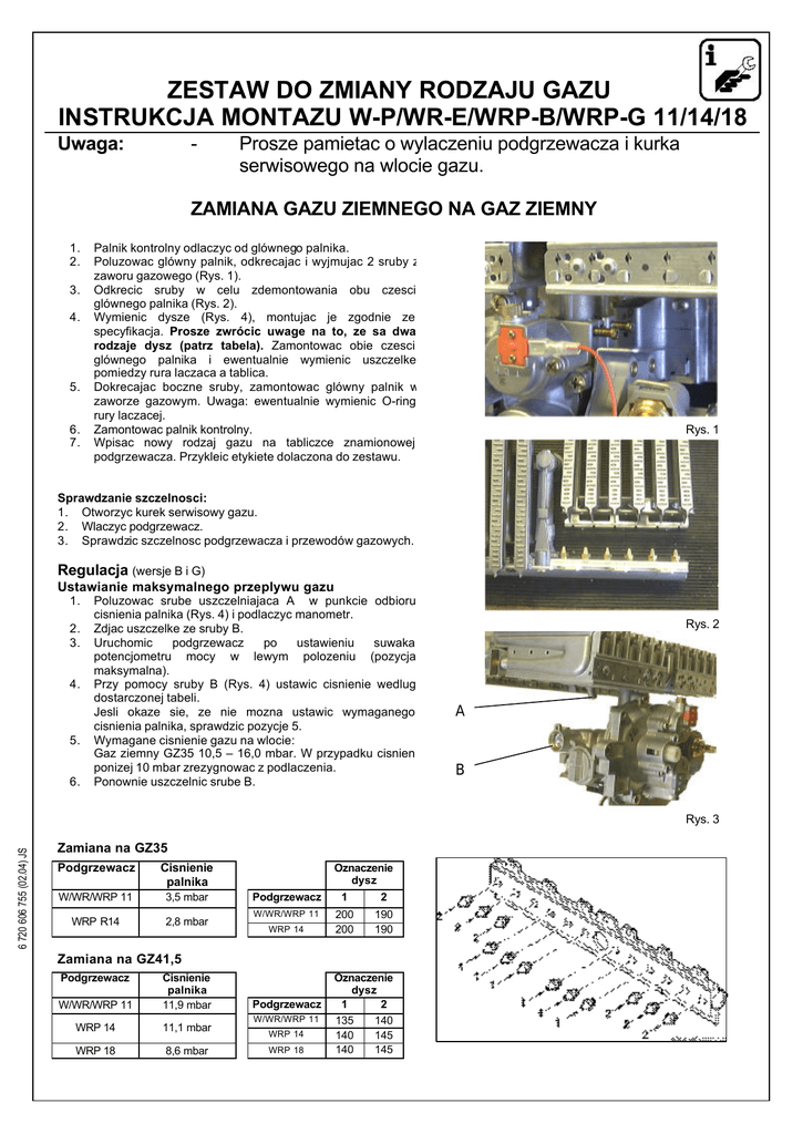 ZESTAW DO ZMIANY RODZAJU GAZU INSTRUKCJA MONTAZU