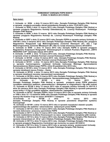 KOMUNIKAT ZARZĄDU PZPN III/2013 Z DNIA 13 MARCA 2013
