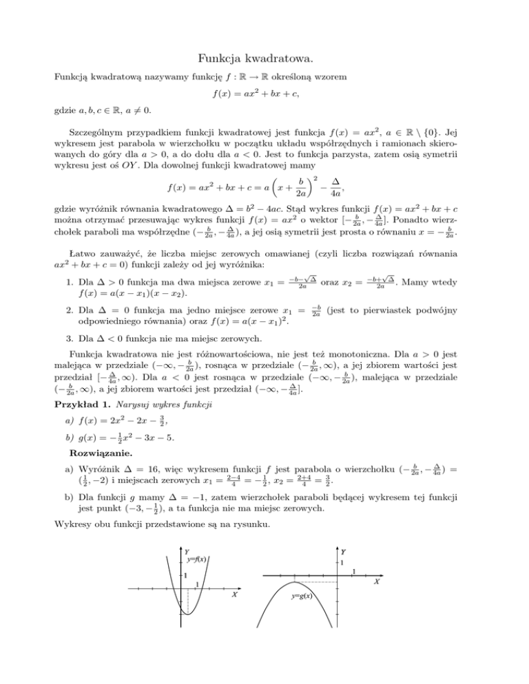gdzie wyróżnik równania kwadratowego ∆ = b2 − 4ac. Stąd wykres funkcji f (x) = ax2 + bx + c