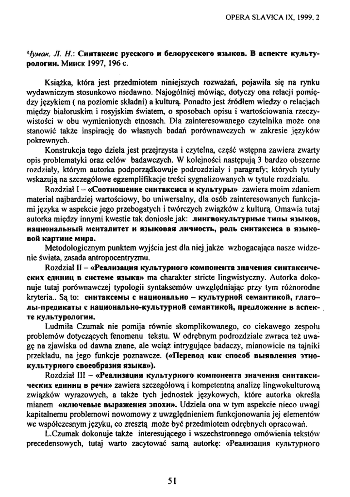 OPERA SLAVICA IX, 1999. 2 `íyjuaK, JI. H.\ CHHTSKCHC pyccKoro