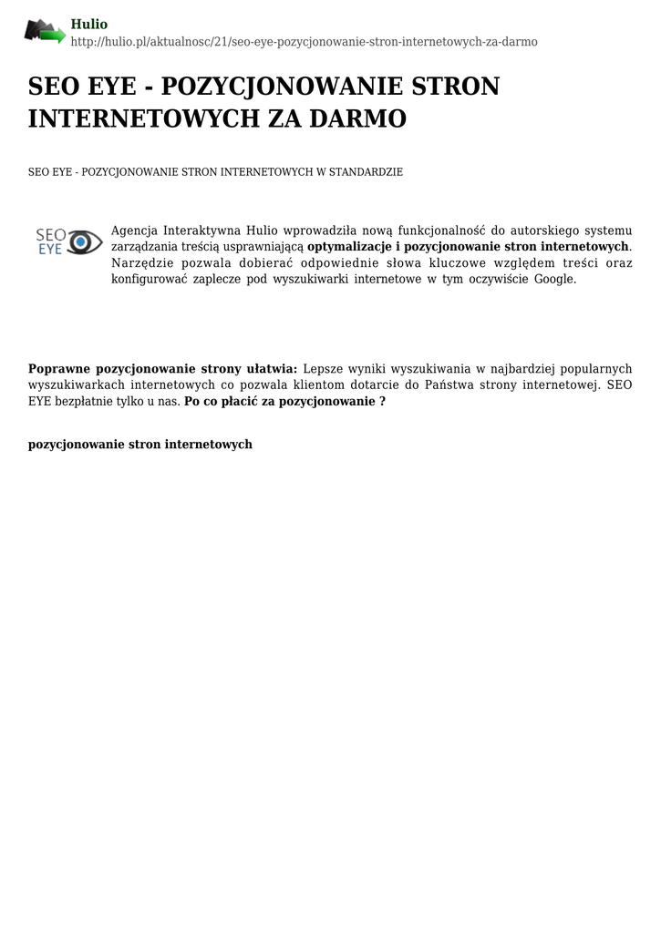 seo eye - pozycjonowanie stron internetowych za darmo