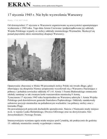 17 stycznia 1945 r. Nie było wyzwolenia Warszawy