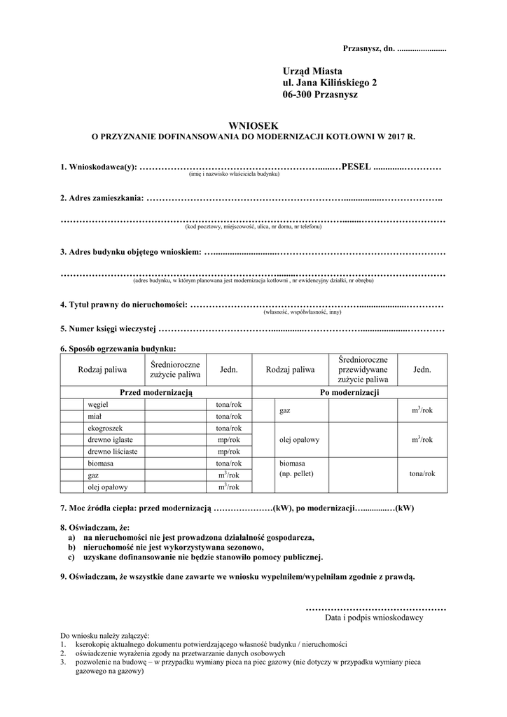 Wzór wniosku na wymianę pieca