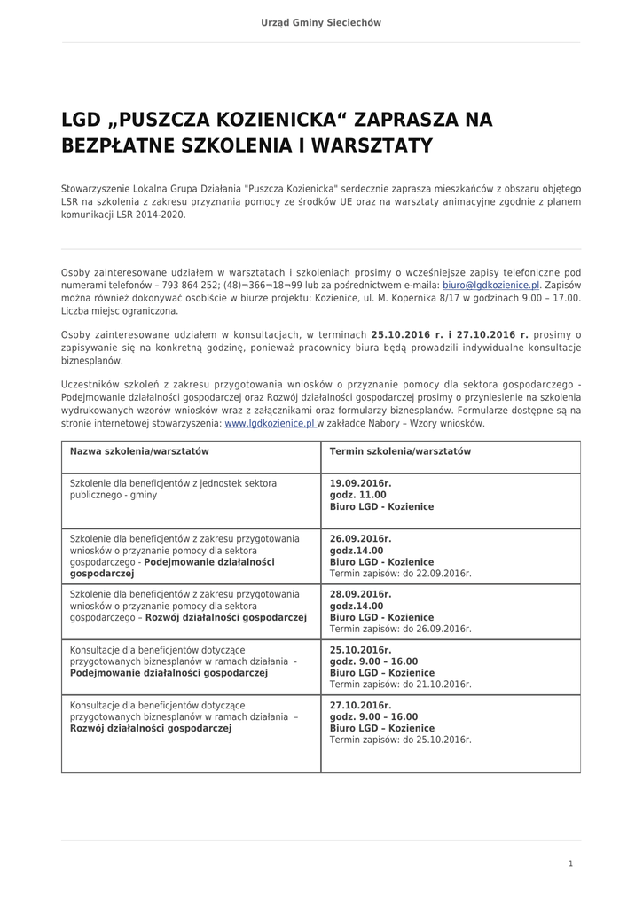 lgd „puszcza kozienicka“ zaprasza na bezpłatne szkolenia i warsztaty
