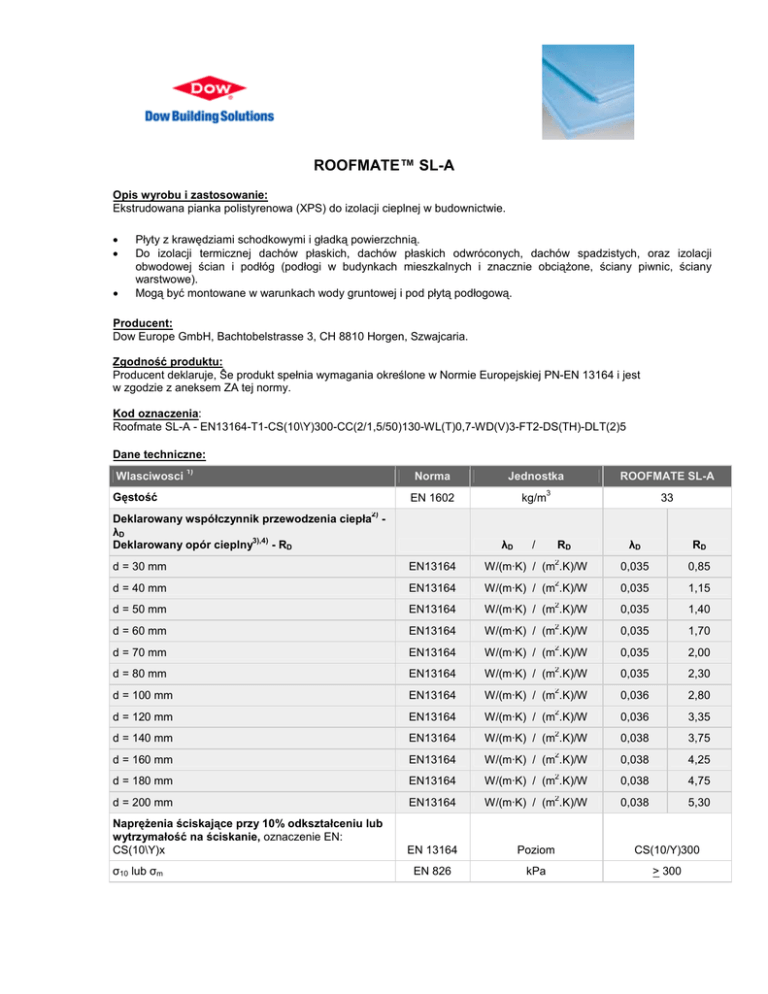 powinna być określona na podstawie normy EN ISO 10456. dN: grubość nominalna pianki