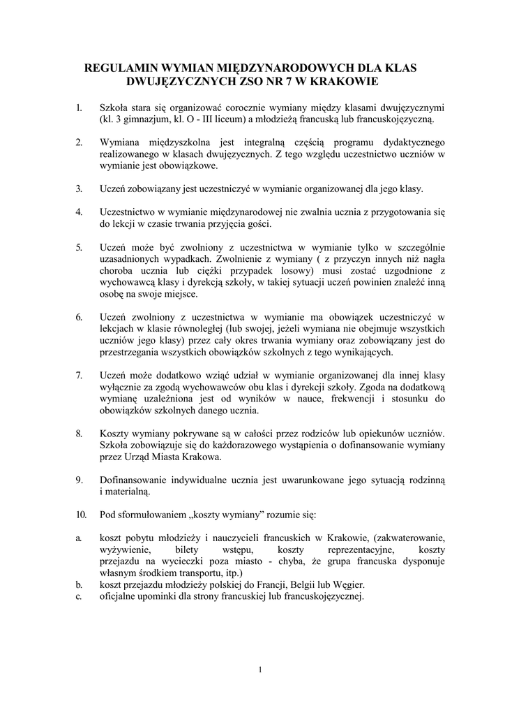 Regulamin Wymian Międzynarodowych ZSO nr 7.