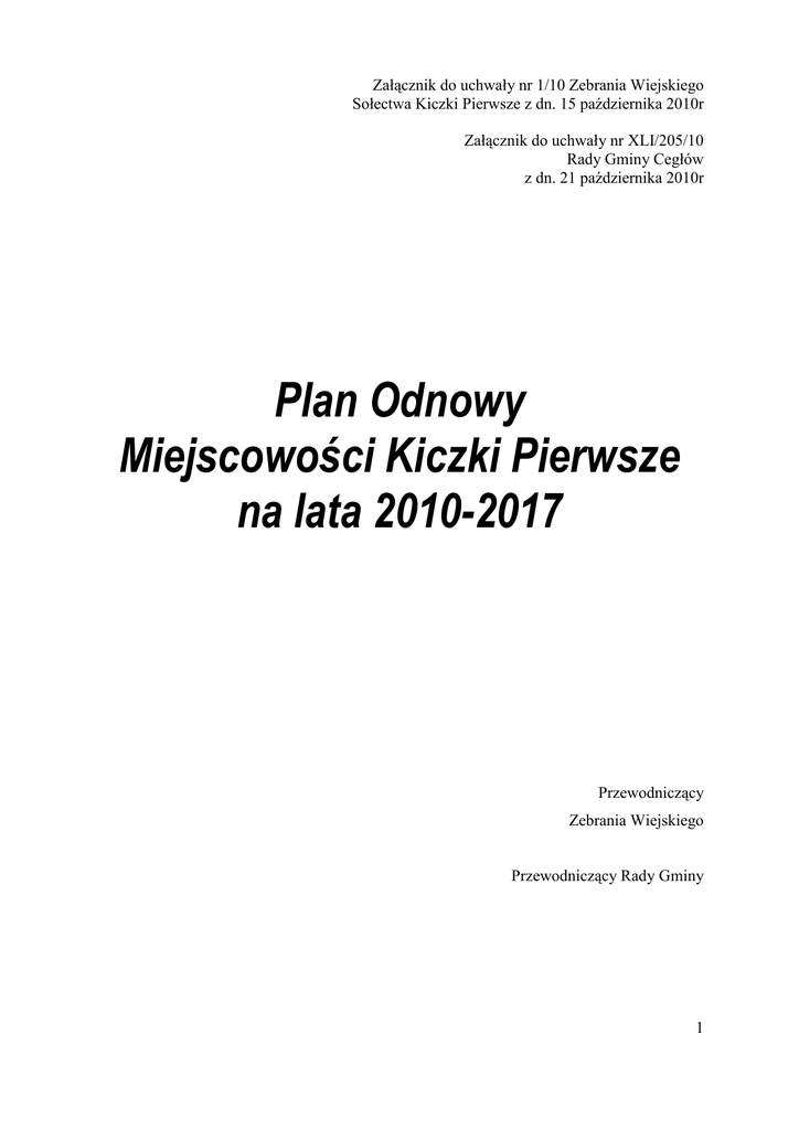 Plan Odnowy Miejscowości Kiczki Pierwsze