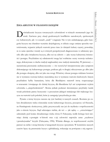 IDEA KRYZYSU W FILOZOFII DZIEJÓW oświadczenie kryzysu