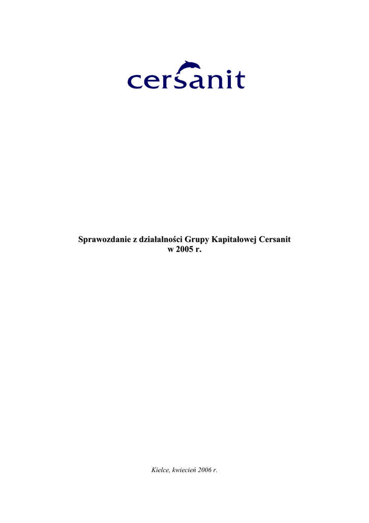 Sprawozdanie z działalności Grupy Kapitałowej Cersanit w 2005 r. Kielce, kwiecień 2006 r. Grupa Cersanit __________________________________________________________________________________________________________________________________________________________________________________________________________________________________________________________________ Do Akcjonariuszy, Partnerów handlowych, Klientów i Pracowników Grupy Cersanit Szanowni Państwo, Z wielką satysfakcją zwracam się do Państwa, podsumowując 2005 rok – kolejny, bardzo pomyślny okres dla Grupy Cersanit, w którym osiągnęliśmy wszystkie przyjęte do realizacji cele. W 2005 roku przychody ze sprzedaży i zysk netto Grupy wzrosły do rekordowego poziomu i wyniosły odpowiednio: 653.629 tys. zł i 144.613 tys. zł., co oznacza w porównaniu z 2004 rokiem ponad 12%-owy wzrost przychodów ze sprzedaży i ponad 23%-owy wzrost zysku netto. Kapitalizacja Spółki na Giełdzie Papierów Wartościowych w Warszawie osiągnęła historyczne maksimum, wynosząc na 03.04.2006 r. blisko 2,2 mld PLN. Czyniąc starania o coraz większe uznanie dla naszych produktów wśród Klientów, kontynuowaliśmy wprowadzanie do sprzedaży w 2005 r. licznych nowości asortymentowych, m.in.: nowych kolekcji płytek ceramicznych, nowych linii ceramiki sanitarnej, a także nowych wzorów mebli łazienkowych, wanien akrylowych oraz kabin prysznicowych. Jestem przekonany, że staną się one powodem dużego zadowolenia dla Nabywców naszych wyrobów. Jak informowaliśmy Państwa w lipcu ubiegłego roku, zakończona została budowa fabryki mebli łazienkowych w starachowickiej Specjalnej Strefie Ekonomicznej – jednego z najnowocześniejszych tego typu obiektów w Europie. Zakończenie wspomnianego projektu przyczyni się do poszerzenia bogatej oferty cersanitowskich produktów. Drodzy Państwo, strategia dla Cersanitu zakłada dalsze, systematyczne umacnianie pozycji Grupy, jako dostawcy kompleksowego wyposażenia łazienek, zarówno na rynku krajowym, jak i zagranicznym. Pragnę w tym miejscu po raz kolejny zapewnić Akcjonariuszy Spółki, że wzorem lat ubiegłych, również w przyszłości nie będziemy szczędzić wysiłków, w celu najbardziej efektywnego gospodarowania powierzonym nam przez Państwa kapitałem. Mirosław Jędrzejczyk Prezes Zarządu Cersanit S.A. Kielce, 3 kwietnia 2006 r. __________________________________________________________________________________________________________________________________________________________________________________________________________________________________________________________________ Sprawozdanie z działalności - SA- RS / 2005 2 Grupa Cersanit __________________________________________________________________________________________________________________________________________________________________________________________________________________________________________________________________ 1. Wstęp 1.1. Grupa Kapitałowa Cersanit Cersanit S.A. jest największym krajowym dostawcą kompleksowego wyposażenia łazienek. Spółka prowadzi działalność w ramach Grupy Kapitałowej. Cersanit S.A. prowadzi dystrybucję produktów wytworzonych w zależnych spółkach produkcyjnych oraz innych towarów służących wyposażeniu łazienek. Każda z zależnych spółek krajowych produkuje inny asortyment wyrobów. Organizacja Grupy sprzyja m.in. oszczędnościom kosztowym oraz umożliwia budowanie jednolitego wizerunku marki CERSANIT, jako synonimu „WSZYSTKIEGO DO ŁAZIENKI”. Grupę tworzą: Cersanit S.A. z siedzibą w Kielcach – spółka matka, podmiot dystrybucyjny, lider na krajowym rynku kompleksowego wyposażenia łazienek. Cersanit I Sp. z o.o. w Krasnymstawie (podmiot w 100% zależny od Cersanit S.A.) największy polski producent ceramiki sanitarnej. Cersanit II S.A. w Specjalnej Strefie Ekonomicznej w Starachowicach (spółka w 99,99% zależna od Cersanit S.A.) – producent mebli łazienkowych, kabin prysznicowych, brodzików i wanien akrylowych. Cersanit III S.A. w Specjalnej Strefie Ekonomicznej w Wałbrzychu ( spółka w 99,99% zależna od Cersanit S.A.) - jeden z największych i najnowocześniejszych zakładów w Europie produkujących płytki ceramiczne i gresy. Cersanit Invest Sp. z o.o. z siedzibą w Nowogradzie-Wołyńskim na Ukrainie (spółka w 100% zależna od Cersanit S.A.) - potencjalny producent wyrobów wyposażenia łazienek. Cersanit Ukraina Sp. z o.o. z siedzibą w Nowogradzie-Wołyńskim na Ukrainie (spółka w 99,99% zależna od Cersanit Invest Sp. z o.o.) – potencjalny producent wyrobów wyposażenia łazienek. Cersanit S.A. nie posiada oddziałów (zakładów). Spółki zależne od Cersanit S.A. – poza Cersanit Invest Sp. z o.o. – nie posiadają jednostek zależnych ani stowarzyszonych. Cersanit S.A. posiada przedstawicielstwa w Moskwie i Kijowie, sporządzające samodzielnie sprawozdania finansowe. 1.2. Kapitały 1.2.1. Cersanit S.A. jest przedsiębiorstwem z kapitałem zakładowym w wysokości 13.294.629 zł., obejmującym: - 56.328.000 akcji zwykłych na okaziciela serii A o wartości nominalnej 0,10 zł. każda, 50.000.000 akcji zwykłych na okaziciela serii B o wartości nominalnej 0,10 zł. każda, 10.000.000 akcji zwykłych na okaziciela serii C o wartości nominalnej 0,10 zł. każda, 16.618.290 akcji zwykłych na okaziciela serii D o wartości nominalnej 0,10 zł. każda. 1.2.1.1. W 2005 r. przeprowadzono podział wartości nominalnej akcji Spółki w stosunku 1:10. __________________________________________________________________________________________________________________________________________________________________________________________________________________________________________________________________ Sprawozdanie z działalności - SA- RS / 2005 3 Grupa Cersanit ______________________________________________________________________________________________________________________________________