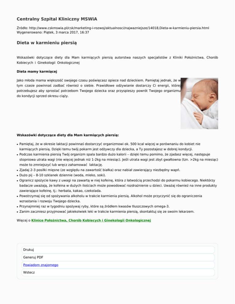 Centralny Szpital Kliniczny MSWiA Dieta w karmieniu piersią