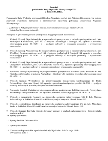 Protokół posiedzenia Rady Wydziału Historycznego UG z dnia