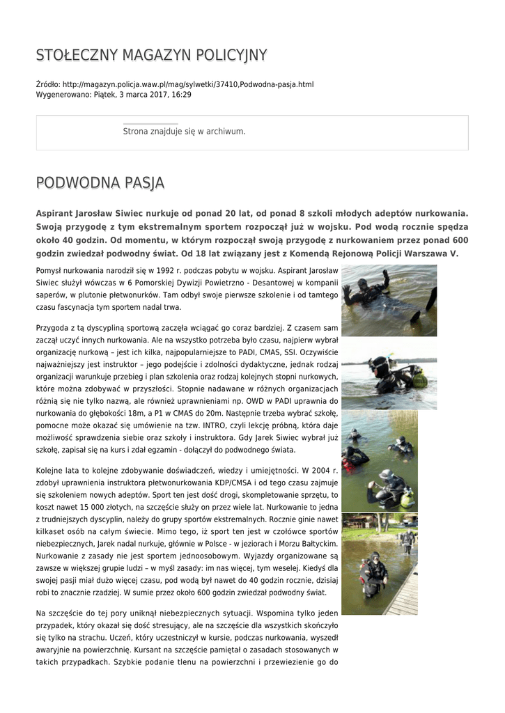 STOŁECZNY MAGAZYN POLICYJNY PODWODNA PASJA