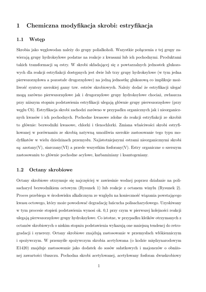 1 Chemiczna modyfikacja skrobi: estryfikacja