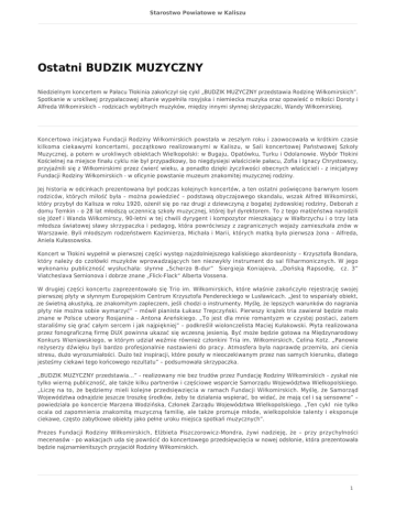 Ostatni BUDZIK MUZYCZNY - Starostwo Powiatowe w Kaliszu
