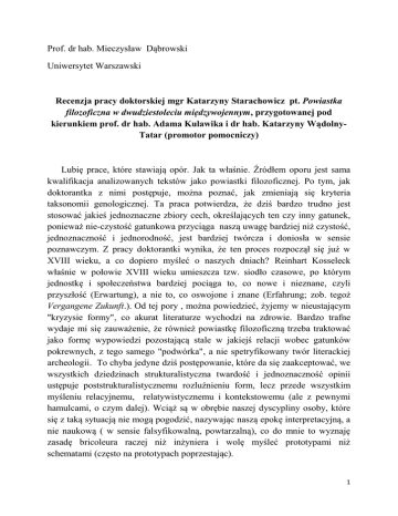 Stwierdzam, iż praca doktorska mgr Katarzyny Starachowicz pt.