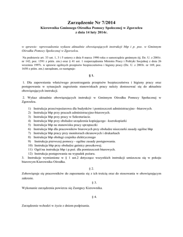 Zarządzenie Nr 7/2014 - Gminny Ośrodek Pomocy Społecznej w