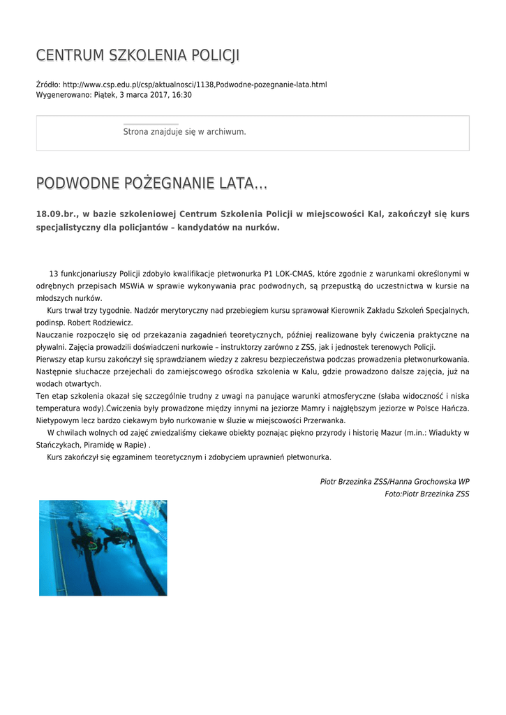 CENTRUM SZKOLENIA POLICJI PODWODNE POŻEGNANIE LATA…