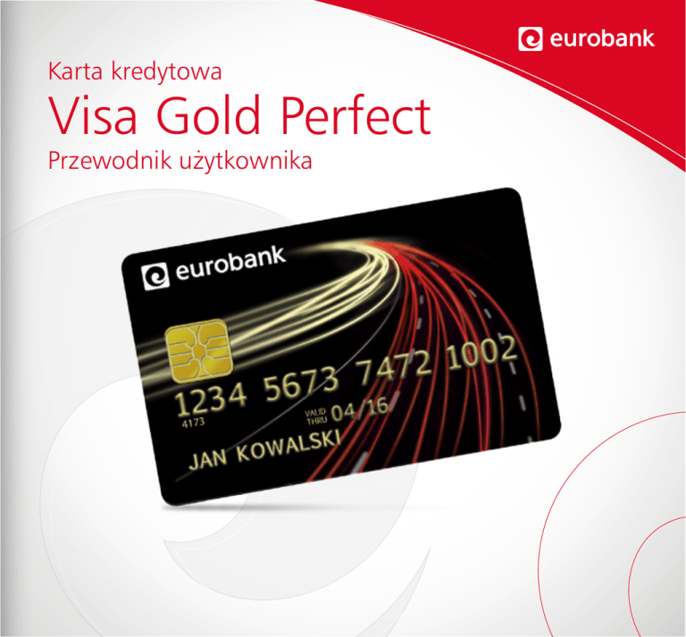 Karta kredytowa Visa Gold Perfect Przewodnik użytkownika 1. Aktywacja karty 2. Korzystanie z karty Serdecznie witamy w gronie posiadaczy karty kredytowej Visa Gold Perfect eurobanku Udało się, Twoja karta została pomyślnie aktywowana! Gdzie możesz z niej korzystać? Aby móc przekonać się o wszystkich zaletach, jakie oferuje nowa karta, najpierw należy ją aktywować. Przed aktywacją sprawdź, czy otrzymałeś kod PIN, ponieważ bez niego nie będziesz mógł korzystać z karty. Aktywuj swoją nową kartę: WWW w serwisie eurobank online, jeśli posiadasz token w placówce eurobanku dzwoniąc do Centrum Obsługi Klienta pod numer 71 799 11 11 – koszt połączenia wg stawki operatora. Płatności kartą: Dzięki Visa Gold Perfect dokonasz płatności w punktach handlowo-usługowych, sklepach, na stacjach benzynowych, a także zapłacisz za zamówiony przez Internet towar bądź usługę. Transakcje zbliżeniowe: Twoja Visa Gold Perfect to także możliwość dokonywania szybkich i wygodnych płatności zbliżeniowych. Limit takiej pojedynczej transakcji w kraju to 50 zł. Wypłaty z bankomatu: Karty możesz także użyć do wypłaty gotówki z bankomatu. Pamiętaj jednak, że okres bezodsetkowy nie obejmuje transakcji gotówkowych, co oznacza, że odsetki od wypłaconej kwoty pobierane są od dnia dokonania transakcji, a dodatkowo zostanie naliczona prowizja za wypłatę z bankomatu. Opłata za kartę: • wystarczy, że w ciągu 3 miesięcy od zawarcia umowy na rachunku zostanie rozliczone co najmniej 5 transakcji bezgotówkowych, a unikniesz opłaty za jej wydanie • jeśli w ciągu 12 miesięcy poprzedzających naliczenie opłaty na rachunku zostanie rozliczone min. 35 transakcji bezgotówkowych lub łączna kwota transakcji bezgotówkowych wyniesie min. 20 000 zł*, wówczas unikniesz opłaty rocznej za kartę * Szczegółowe informacje dotyczące kart kredytowych, w tym opłaty i prowizje, znajdziesz na stronie www.eurobank.pl Aby bezpiecznie korzystać z karty, podpisz ją i chroń swój kod PIN. Odpowiedzi na wszystkie pytania dotyczące płatności zbliżeniowych znajdziesz w „Przewodniku dla zbliżeniowych kart kredytowych” na stronie www.eurobank.pl w zakładce karty - karty kredytowe - Visa Gold Perfect - dokumenty sprawdź 3. Okres bezodsetkowy 4. Program bonusowy Okres bezodsetkowy, czyli Grace period, jest to okres, za który nie zapłacisz odsetek od transakcji bezgotówkowych pod warunkiem, że całość zadłużenia z ostatniego zestawienia transakcji zostanie spłacona w terminie podanym na tym zestawieniu. W przypadku kart Visa Gold Perfect okres bezodsetkowy wynosi do 56 dni, na który składa się miesięczny cykl rozliczeniowy (od 28 do 31 dni) oraz 25 dni na spłatę zadłużenia. Program bonusowy polega na przyznawaniu Bonusów za rozliczone w danym Cyklu rozliczeniowym transakcje bezgotówkowe dokonane w supermarketach i na stacjach paliw w kraju i za granicą. Termin zakończenia cyklu rozliczeniowego Wybrany termin zakończenia cyklu rozliczeniowego obowiązuje przez cały okres trwania umowy. Jeżeli jako termin zakończenia cyklu rozliczeniowego wybrałeś 20. dzień miesiąca, wówczas termin spłaty będzie wypadał ok. 15. dnia każdego miesiąca. Rysunek poniżej przedstawia przykładowy cykl rozliczeniowy. Sam decydujesz, czy spłacisz całość zadłużenia, czy wymaganą kwotę minimalną. Im większy obrót na rachunku karty, tym większa wysokość wypłaconego Bonusu! Minimalna wysokość obrotów w cyklu rozliczeniowym wymaganych do otrzymania Bonusu w ramach Programu bonusowego dla kart kredytowych Visa Gold Perfect to 300 zł. Wysokość Bonusu przyznawanego w ramach Programu bonusowego dla kart kredytowych Visa Gold Perfect w zależności od obrotów w danym Cyklu rozliczeniowym Od 300,00 zł do 899,99 zł 0,5% Od 900,00 zł 1,0% W ramach Programu bonusowego zwracana jest część wydatków poniesionych w supermarketach i na stacjach paliw. Spłata w tym czasie całości zadłużenia (850 zł) gwarantuje, że nie zostaną naliczone odsetki od transakcji bezgotówkowych. Jeśli nie możesz spłacić całości zadłużenia, spłać co najmniej minimalną kwotę spłaty (5% zadłużenia). RRSO na dzień 09.10.2014 r. dla przykładu reprezentatywnego przy limicie w wysokości 2 900 PLN wykorzystanego w całości poprzez dokonanie jednej transakcji bezgotówkowej z oprocentowaniem 12%, spłacanej w ciągu 24 miesięcy (przez pierwsze 23 miesiące spłaty w wysokości 5% kwoty zadłużenia, w ostatnim, 24 miesiącu spłata pozostałej część zadłużenia), z uwzględnieniem opłaty 150 PLN za wydanie karty i opłaty rocznej za kartę 100 PLN, wynosi 18,96%. Całkowita kwota do zapłaty wynosi: 3 600,76 PLN. Kwota Bonusu wypłaconego za pojedynczy Cykl rozliczeniowy nie może przekraczać kwoty 100 zł, a całkowita łączna kwota Bonusów wypłaconych w jednym roku kalendarzowym nie może przekraczać kwoty 750 zł. Szczegółowe informacje i zasady programu znajdziesz na stronie www.eurobank.pl w zakładce karty - karty kredytowe - Visa Gold Perfect - dokumenty. sprawdź 5. Zestawienie transakcji Po zakończeniu okresu rozliczeniowego otrzymasz z Banku wyciąg z karty kredytowej za miniony cykl. Znajdziesz na nim m.in.: informacje o przyznanym limicie, dokonanych kartą transakcjach, całkowitym zadłużeniu, minimalnej kwocie spłaty (która wynosi 5% wykorzystanego limitu, min. 30 zł) oraz terminie płatności i rachunku do spłaty. Sam decydujesz, w jakiej formie chcesz otrzymywać zestawienie transakcji. Jeśli otrzymujesz pocztą tradycyjny wyciąg, zachęcamy, byś wybrał wyciąg elektroniczny – wówczas otrzymasz go na swój adres e-mail. Ponadto, wyciąg zawsze udostępniamy w serwisie eurobank online. To znacznie wygodniejszy sposób! wyciąg elektroniczny – oszczędź czas i środowisko Elektroniczny wyciąg z karty kredytowej w eurobanku to: • wygoda i szybkość – wyciąg w formacie PDF przesyłany jest na Twó