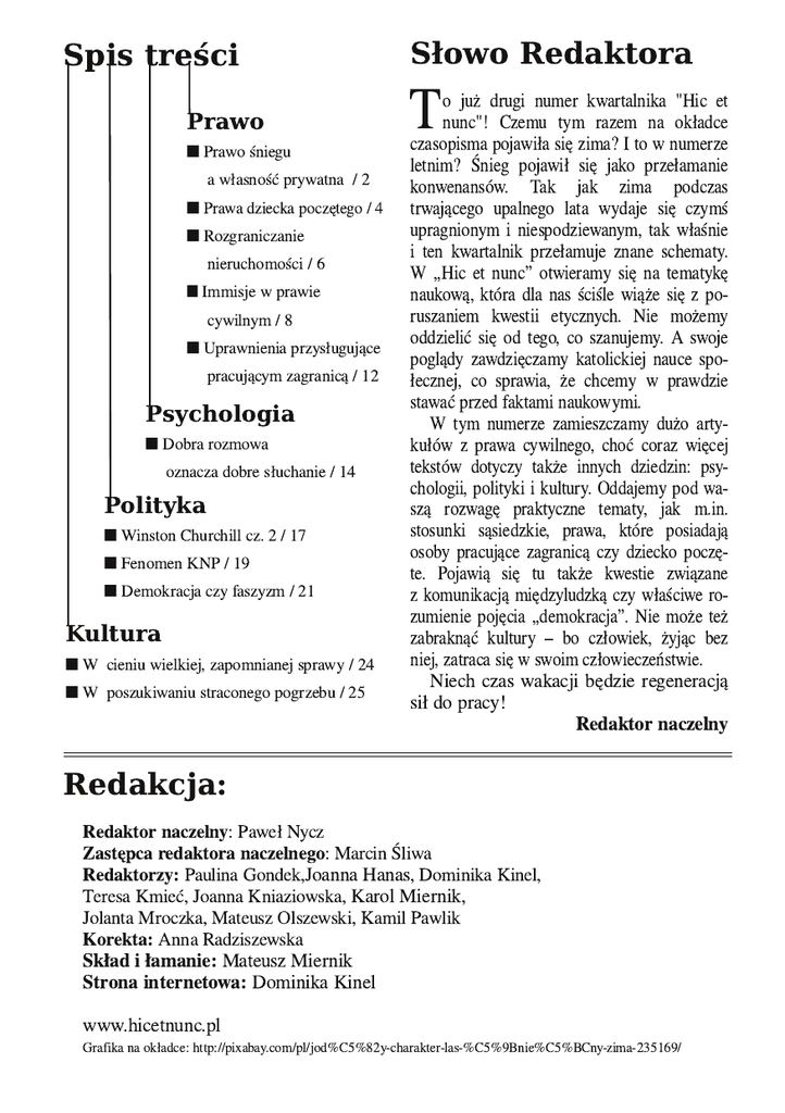 Słowo Redaktora Redakcja: Spis treści