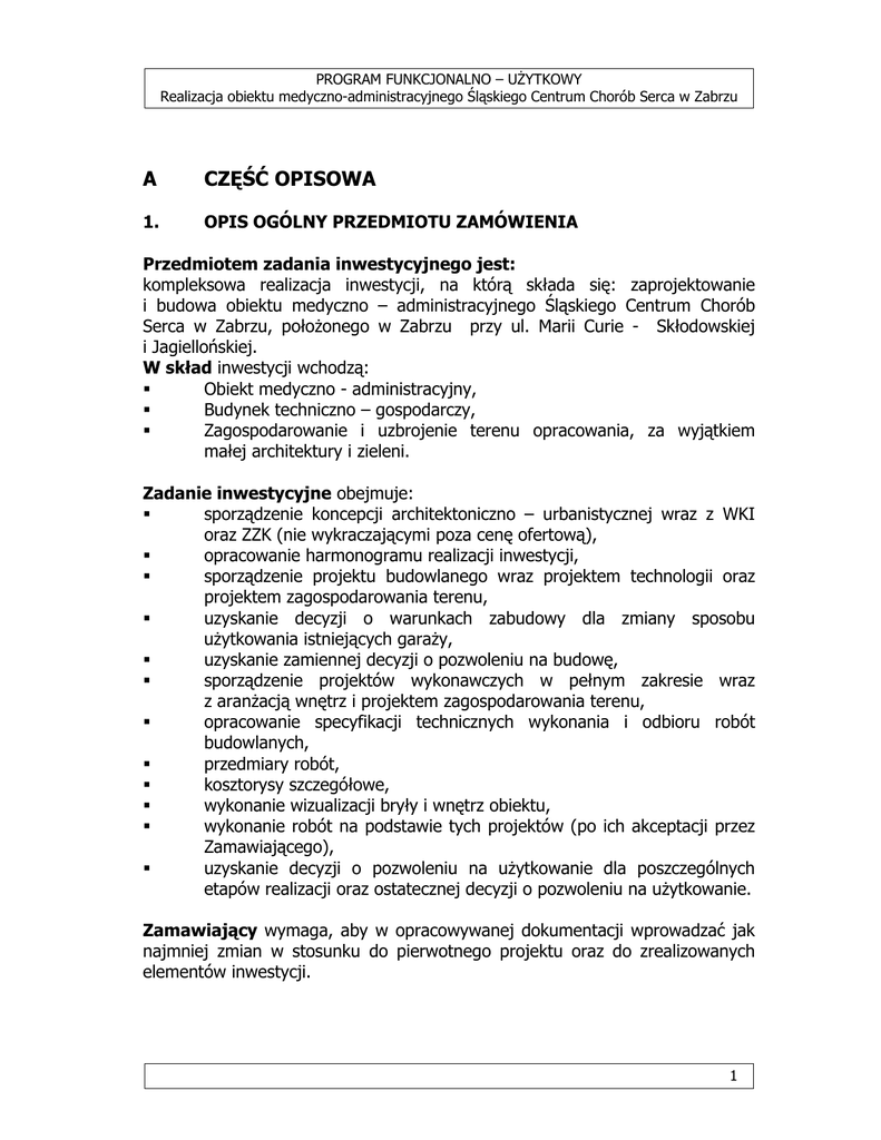 a część opisowa - Śląskie Centrum Chorób Serca w Zabrzu