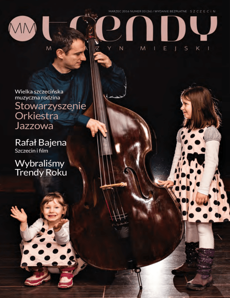 MARZEC 2016 NUMER 03 (36) / WYDANIE BEZPŁATNE Wielka szczecińska muzyczna rodzina Stowarzyszenie Orkiestra Jazzowa Rafał Bajena Szczecin i film Wybraliśmy Trendy Roku #spis treści 03/2016 # 06 Newsroom Design, moda, wydarzenia # 16 Felieton Snapchat - czyli to, co ulotne # 18 Temat z okładki Wielka jazzowa szczecińska rodzina # 26 Showroom Wiosenny szyk / Jestem kobietą # 34 Edytorial Wiosna kobiet 18 / Temat z okładki # 40 Rozmowa miesiąca Jazz, Szczecin i dzieciaki Rafał Bajena mówi o filmie # 44 Kulinaria Smaki w Szczecinie # 54 Zdrowie 34 / Edytorial Wiosna kobiet Medycyna estetyczna / stomatologia mikroskopowa # 64 Kultura Na co wybrać się w marcu # 66 Rozmowa Co słychać u Katarzyny Szych # 74 Styl życia Kacper Skoczylas o mediach społecznościowych # 76 Styl życia Biegam, bo lubię # 80 Trendy towarzyskie Kto, z kim, gdzie, kiedy i dlaczego #3 #Jarosław Jaz Redaktor naczelny #Redakcja OKŁADKA: Jak swego czasu śpiewał (dziś już klasyk) Tymon Tymański ze swoim zespołem Kury na płycie „Polovirus”, jazzu nie pokuma nikt. Dorzucał przy tym kilka przyprawionych mięsem gorzkich prawd na temat dokonań jazzowych muzyków i wychodził z tego całkiem zgrabny pamflet, obrażający zarówno środowisko muzyczne, jak i tych mało świadomych odbiorców. To były lata dziewięćdziesiąte XX wieku, z Trójmiasta i okolic na całą Polskę rozprzestrzeniał się yass, a w Szczecinie właśnie dorastało środowisko, które później założyło Stowarzyszenie Orkiestra Jazzowa. Dziś stowarzyszenie obchodzi piętnastą rocznicę istnienia, rośnie kolejne pokolenie jazzmanów, a ich muzykę chce „kumać” coraz więcej osób. Najlepszym momentem, by poznać się z jazzem, będą marcowe koncerty w ramach festiwalu Szczecin Jazz. Wystąpią muzycy z USA, Europy, lokalni artyści i ich dzieci – podczas tego cyklu wydarzeń będzie można posłuchać ich wszystkich. Ale nie tylko o jazzie piszemy w marcowym wydaniu. Kilka dni temu rozdaliśmy statuetki „Trendów Roku”, które głosami naszych Czytelników przypadły Jarosławowi Dulnemu, wydarzeniu biegowemu City Trail nad Jeziorem Szmaragdowym oraz Fundacji na rzecz Zwierząt „Dzika Ostoja”. Co wyróżnia wytrwałego biegacza, imprezę o sportowym charakterze i ludzi z pasją pomagającym zwierzętom spośród pozostałych nominowanych? To kapitał społeczny, zdobyty dzięki ciężkiej pracy, NA ZDJĘCIU Stowarzyszenie Orkiestra Jazzowa FOTO Konrad Nowak Redakcja: Nowy Rynek 3, 71-875 Szczecin tel. 91 48 13 341; fax 91 48 13 342 [email protected] www.szczecin.naszemiasto.pl/mm-trendy Redaktor naczelny: Jarosław Jaz Product manager: Ewa Żelazko Promocja i marketing: Marta Rospara Redakcja: Paulina Targaszewska, Bogna Skarul, Małgorzata Klimczak, Tomasz Kuczyński, Agata Maksymiuk, Anna Folkman / Korekta: Beata Pikutowska Dział foto: Sebastian Wołosz, Andrzej Szkocki Skład magazynu: Ewa Kaziszko MOTIF studio Dystrybucja: Piotr Grudziecki Druk: COMgraph Sp. z o.o. Prezes oddziału: Piotr Grabowski Reklama: tel. 500 324 240, [email protected] Wydawnictwo: Polska Press Grupa sp. z o.o. ul. Domaniewska 45, 02-672 Warszawa Prezes: Dorota Stanek doskonałej organizacji i aktywnemu zaangażowaniu. Dzięki temu głosy liczone w tysiącach (!) zostały oddane przez znajomych, fanów czy po prostu życzliwe osoby właśnie na nich. Gratulujemy, a do relacji z wręczenia statuetek zapraszam na kolejne strony. Zapraszam także do lektury materiałów przygotowanych przez naszych dziennikarzy. Piszemy o tym, dlaczego w Szczecinie warto kręcić filmy, czy należy się bać mediów społecznościowych, trochę o modzie, kobietach, bieganiu oraz o wiośnie, moim ulubionym temacie. MAGAZYN MIEJSKI | NUMER 03/2016 #4 Dołącz do nas na www.facebook.com/ MagazynMMTrendy oraz Instagram.com/MM.Trendy Redakcja nie ponosi odpowiedzialności za treść ogłoszeń. Materiałów, które nie zostały zamówione redakcja nie zwraca. Na podstawie art. 25 ust. 1 pkt 1 b ustawy z dnia 4 lutego 1994 r. o prawie autorskim i prawach pokrewnych Media Regionalne sp. z o.o. zastrzegają, że dalsze rozpowszechnianie materiałów opublikowanych w MM Trendy jest zabronione bez zgody Wydawcy. MAGAZYN MIEJSKI | NUMER 03/2016 Foto: Sławek Trojanowski ESTE STUDIO / na zdjęciu - Joanna Dudziak - inicjator akcji # Ne ws ro om Projekt Metamorfoza, czyli zmień siebie Stowarzyszenie „Nie ma bym...” razem z firmą Dudziak i Partnerzy stworzyło projekt, który pozwoli nauczyć się, jak zmienić swoje nawyki, utarte schematy i zrezygnować z wymówek. Wszystko to w ciągu 10 tygodni pracy z profesjonalistami z różnych dziedzin. Udział w projekcie jest bezpłatny. Na uczestniczki czekają indywidualne zajęcia m.in. z trenerem personalnym, coachem motywacyjnym i dietetykiem. Panie będą rozwijać się podczas ćwiczeń na siłowni, lekcji tańca i fitness. Zmiany dotyczą też wyglądu zewnętrznego, dlatego organizatorzy zaplanowali odpowiednie zabiegi z dziedziny medycyny estetycznej oraz kosmetologii. Będzie można również poznać tajniki fryzjerstwa i makijażu. Istotą projektu są też warsztaty z zarządzania czasem i finansami, poznania własnego ja. Inauguracja projektu odbędzie się 5 marca w Starej Rzeźni. Na gali pojawi się Jacek Rozenek, polski aktor i trener biznesu, oraz uznani mówcy motywacyjni i artyści m.in. Małgorzata Krawczak oraz Michał Pawłowski. Finał akcji jest zaplanowany na 14 maja. (am) #6 Newsroom Foto: Sebastian Wołosz Foto: Materiały Prasowe # Największe modowe wydarzenie roku # Szczecin Fashion Expo 2016 „Żona Hollywood” odwiedziła Szczecin Kinga Korta, gwiazda telewizyjnego show „Żony Hollywood” przyjechała odwiedzić atelier projektantki Sylwii Majdan, z którą przyjaźni się od kilku lat. - To moja pierwsza wizyta w Szczecinie – mówi Kinga Korta. - Sylwię poznałam przez Instagram i Facebooka. Zaczęłam śledzić jej projekty i w końcu zdecydowałam się do niej nap