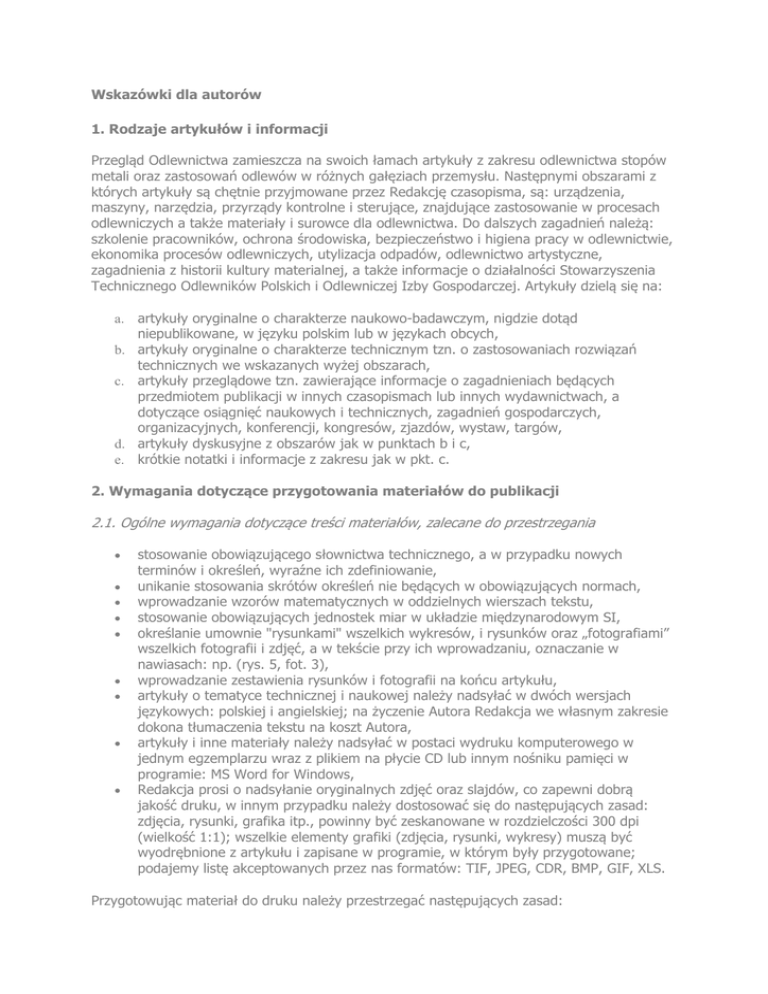 Wskazówki dla autorów - Przegląd Odlewnictwa
