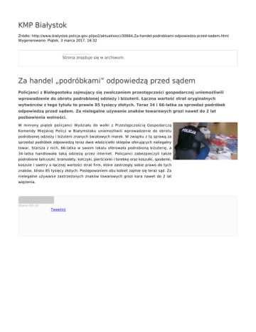 KMP Białystok Za handel „podróbkami” odpowiedzą przed sądem