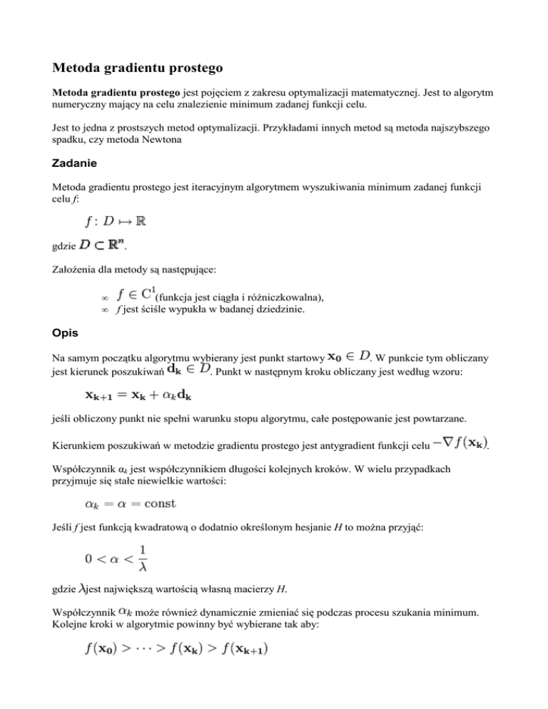 Metoda gradientu prostego jest iteracyjnym algorytmem wyszukiwania minimum zadanej funkcji
