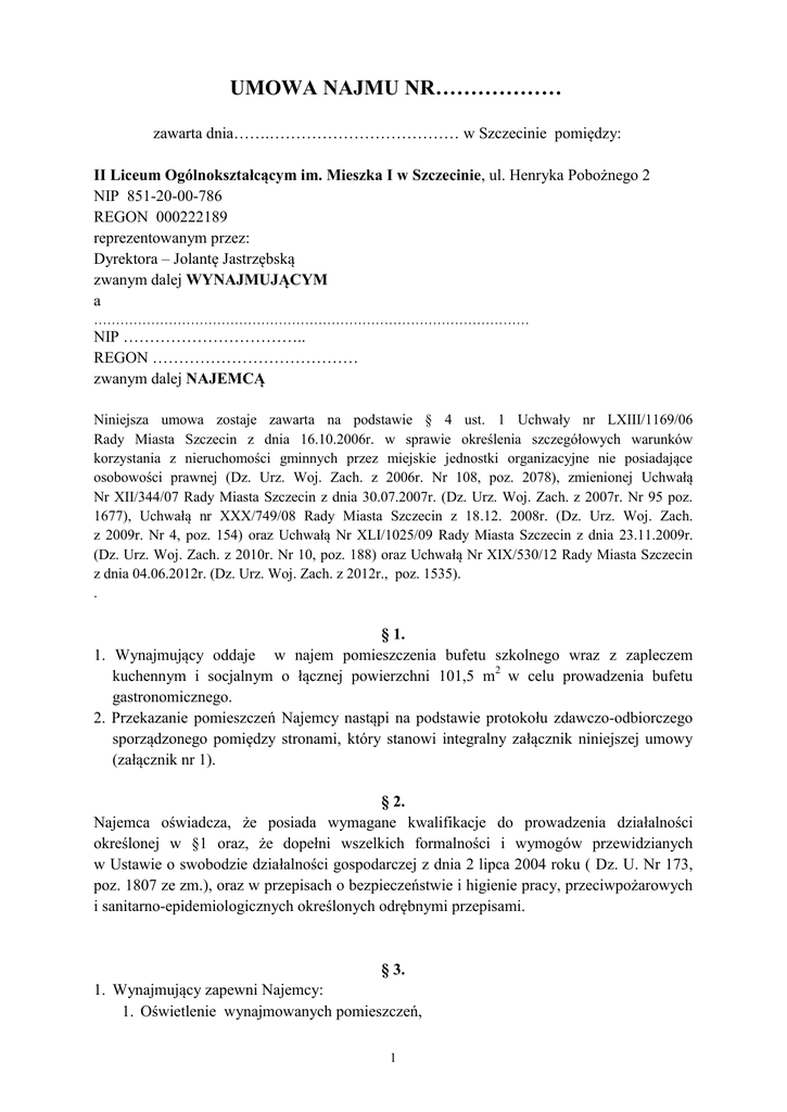 Umowa najmu - II Liceum Ogólnokształcące im. Mieszka I w