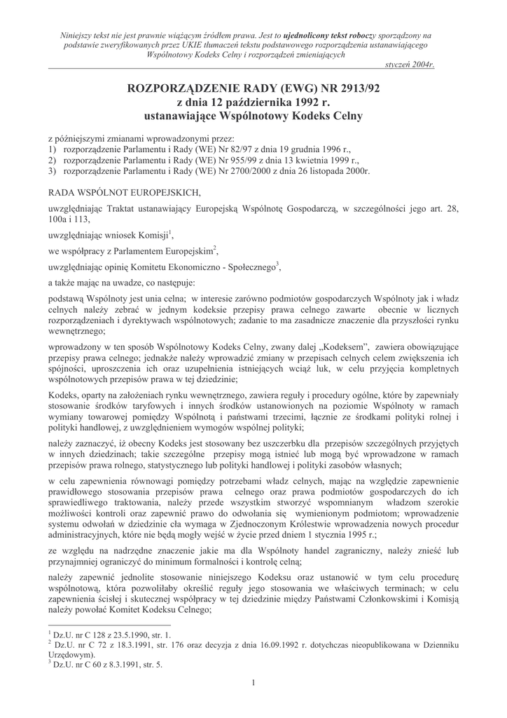 (Wspolnotowy Kodeks Celny)