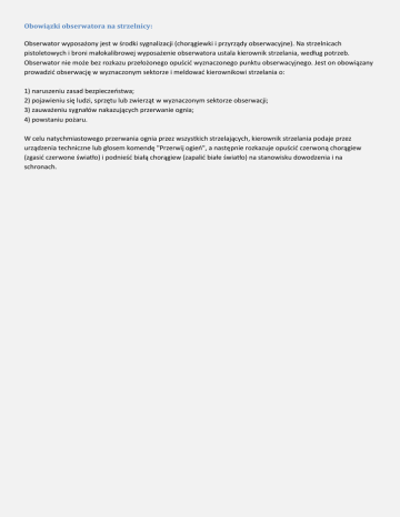 Obowiązki obserwatora na strzelnicy: Obserwator wyposażony jest