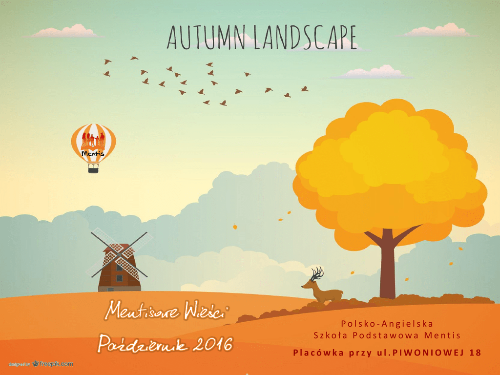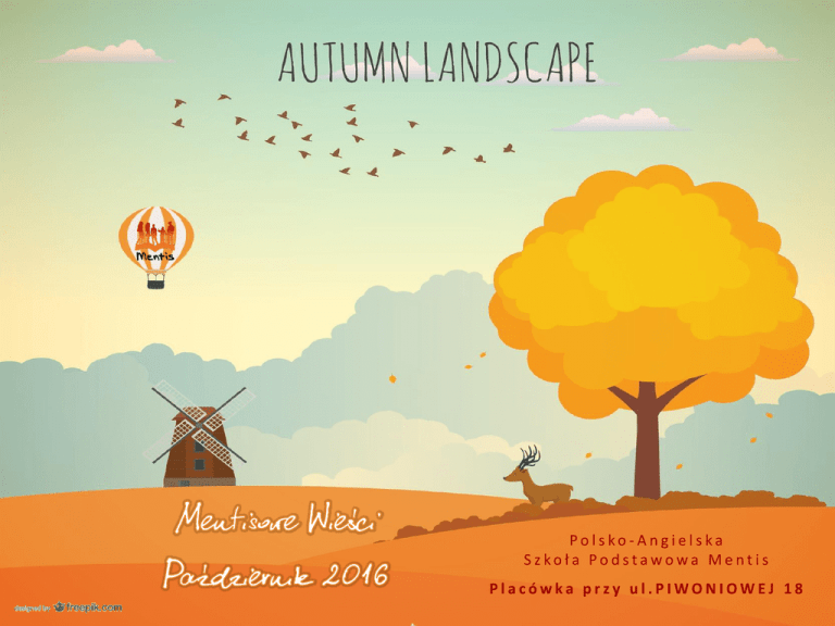 Polsko -Angielska Szkoła Podstawowa Mentis Placówka przy ul.PIWONIOWEJ 18 Polsko-Angielska Szkoła Podstawowa Mentis Placówka przy ul. PIWONIOWEJ 18 30.09.2016 Światowy Dzień Tabliczki Mnożenia 01.10.2016 Mentisowa Wycieczka rowerowa 03.10.2016 Międzynarodowy Dzień Empatii w szkole Mentis 04.10.2016 Otrzęsiny klasy IV 05.10.2016 Projekt Dziecięcego Uniwersytetu Ciekawej Historii 14.10.2016 Warsztaty „Z głową w gwiazdach …”, klasy I-III, IV-VI 18.10.2016 Dzień Pamięci o Powstaniu Warszawskim 19.10.2016 Ogólnopolski konkurs z języków obcych Multitest, dla klas IV-VI 25.10.2016 Konkurs plastyczny „Jesienny pejzaż wsi” 25.10.2016 Rozmowy indywidualne z wychowawcą, dzień otwarty dla klas I-III 26.10.2016 Rozmowy indywidualne, dzień otwarty dla klas IV-VI 26.10.2016 Ślubowanie klasy I, godzina 09.30 Październik 2016 27.10.2016 Kawiarenka dla Rodziców „Mentis Parents’ Club” pn wt śr czw pt sb nd 1 2 28.10.2016 Halloween w szkole Mentis 3 4 5 6 7 8 9 28.10.2016 Przedstawienie klasy IV w języku angielskim 10 11 12 13 14 15 16 17 18 19 20 21 22 23 Październik Olimpiady Przedmiotowe 24 25 26 27 28 29 30 Certyfikat NOWOCZESNA EDUKACJA WCZESNOSZKOLNA 31 Friend of the Week Rady nie od parady Kontakt PODRÓŻE MAŁE I DUŻE MENTISOWA WYCIECZKA ROWEROWA 01.10.2016 (sobota) miejsce zbiórki: Szkoła przy ulicy Piwoniowej 18, godz.10:00 Powrót, godz. 15:00 TRASA WYCIECZKI: Choszczówka – Legionowo – Choszczówka (25km) poziom trudności : średni (dukt leśny) POWRÓT : Nieopodal ul. Piwoniowej w Dzikim Zakątku (ul. Chlubna 1), gdzie będzie czekało na nas ognisko z kiełbaskami i pieczywem. (*ok. 15zł opłata za ognisko) WARTO MIEĆ W PLECAKU: picie i jedzenie na czas jazdy, ubranie adekwatne do pogody, kask rowerowy nieobowiązkowo sprzęt serwisowy (dętka, pompka, klucze rowerowe) Chęć udziału w wycieczce należy zgłosić do 29.09.2016 na adres: [email protected] (w mailu, proszę o podanie numeru telefonu kontaktowego) *Opłata: ok 15zł za osobę – jest to opłata dla restauracji Dziki Zakątek jaką ponosimy za przygotowanie kiełbaski i pieczywa. powrót do spisu treści KONKURSOWY ZAWRÓT GŁOWY …PRZED NAMI: Ogólnopolski konkurs z języków obcych Multitest 19.10.2016 (środa) Uczniowie klas IV-VI Konkursy to sposób nie tylko na sprawdzenie naszej wiedzy, ale też mają za zadanie dodać nam wiary w siebie. Każdy udział stanowi również trening, uczy nas jak dawać sobie rady ze stresem towarzyszącym takim wydarzeniom, oraz pokazuje techniki zdawania. Te wszystkie umiejętności są bezcenne w dzisiejszym świecie pełnym testów i egzaminów. W dniu 19 października wszyscy uczniowie klas IV- VI wezmą udział w Ogólnopolskim Konkursie z Języków Obcych Multitest 2016 z języka angielskiego. Testy konkursowe będą wielokrotnego wyboru. Zróżnicowany stopień trudności pytań oraz ich ciekawa forma winny stanowić zachętę do nauki języka angielskiego. Konkurs ten jest uwzględniany przez Kuratorium Oświaty w wykazach zawodów wiedzy, które mogą być uwzględniane na świadectwie szkolnym. Życzymy szczęścia i wierzymy w wiedzę naszych uczniów. powrót do spisu treści KONKURSOWY ZAWRÓT GŁOWY …PRZED NAMI: Kuratoryjne konkursy przedmiotowe Miesiąc październik to czas kuratoryjnych konkursów przedmiotowych. Uczniowie mogą się sprawdzić z języka polskiego, matematyki i informatyki. Uczestnictwo w takim konkursie to możliwość zweryfikowania swojej wiedzy w ulubionej dziedzinie. Wyzwanie to nie lada, lecz satysfakcja jeszcze większa. Życzymy powodzenia i połamania długopisów. powrót do spisu treści Konkurs plastyczny „Jesienny pejzaż wsi” KONKURSOWY ZAWRÓT GŁOWY …PRZED NAMI: Prace do 25.10.2016 (wtorek) Udział w konkursach pobudza do pracy, rozwija wyobraźnię i chęć współzawodnictwa, uczy wytrwałości. Konkursy organizowane przez Muzeum Wsi Mazowieckiej w Sierpcu cieszą się wieloletnią już tradycją. Wzorem lat ubiegłych, również w tym roku zachęcamy do udziału w konkursie pt. „Jesienny pejzaż wsi”. Aby utrwalić piękne pejzaże Muzeum ogłasza konkurs plastyczny pt. „Jesienny pejzaż wsi”, skierowany do dzieci i młodzieży szkolnej regionu Mazowsza, w wieku 10–16 lat. Obowiązuje tu dowolność twórcza, zatem uczestnicy wykonać mogą rysunek, malowankę albo kolaż na papierze, bądź kartonie. Prace powinny przedstawiać fragment ekspozycji muzealnej na tle jesiennego krajobrazu (budynki otoczone roślinnością, pola uprawne, warzywniki, sady, ogródki kwiatowe, wybrany fragment parku dworskiego, lasu gradowego; prace polowe i ogrodnicze z wykorzystaniem dawnych narzędzi i maszyn). Praca może być wykonana na papierze (gramatura 80-160 g/m2) lub kartonie (gramatura 160-250 g/m2) formatu A3, w jednej z 3 technik plastycznych: rysunek (kredki, pastele), malowanka, kolaż. Na artystów i najciekawsze prace czekają cenne nagrody rzeczowe. Regulamin konkursu zakłada przyznanie 36 nagród w 4 kategoriach technicznych i 3 kategoriach wiekowych. Imponująca pula nagród obejmuje m.in. sprzęt fotograficzny, komputerowy i turystyczno-sportowy. Nagrodzone prace zostaną zaprezentowane w formie wystawy pokonkursowej na terenie Muzeum Prace należy dostarczyć pracy do nauczycielki plastyki P. Elżbiety Jarosińskiej- Fogo do 25 października. Wręczenie nagród nastąpi w dniu 14.11.2014r. o godz.: 10.00 w sali konferencyjnej Muzeum Wsi Mazowieckiej w Sierpcu. Zachęcamy do udziału w konkursie. powrót do spisu treści KONKURSOWY ZAWRÓT GŁOWY – ZA NAMI... Mamy zaszczyt ogłosić, że... Polsko-Angielska Szkoła Podstawowa Mentis przy ulicy Piwoniowej 18 zdobyła tytuł CERTYFIKAT W OGÓLNOPOLSKIM KONKURSIE NOWOCZESNA EDUKACJA WCZESNOSZKOLNA Konkurs został przeprowadzony w minionym roku szkolnym. Nasza szkoła, wykonała specjalne zadania przewidziane regulaminem konkursu. Wykonanie bloków, udokumentowanie ich dokumentacją graficzną, fotograficzną oraz opiso
