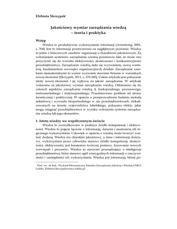 Jakościowy wymiar zarządzania wiedzą – teoria i praktyka