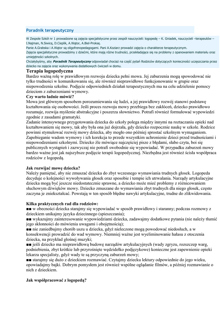 Poradnik terapeutyczny - Zespół Szkół nr 1 w Jaworznie