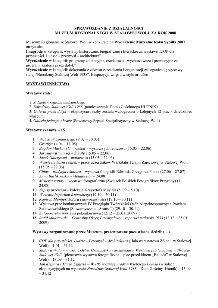 sprawozdanie z działalności - Muzeum Regionalne w Stalowej Woli