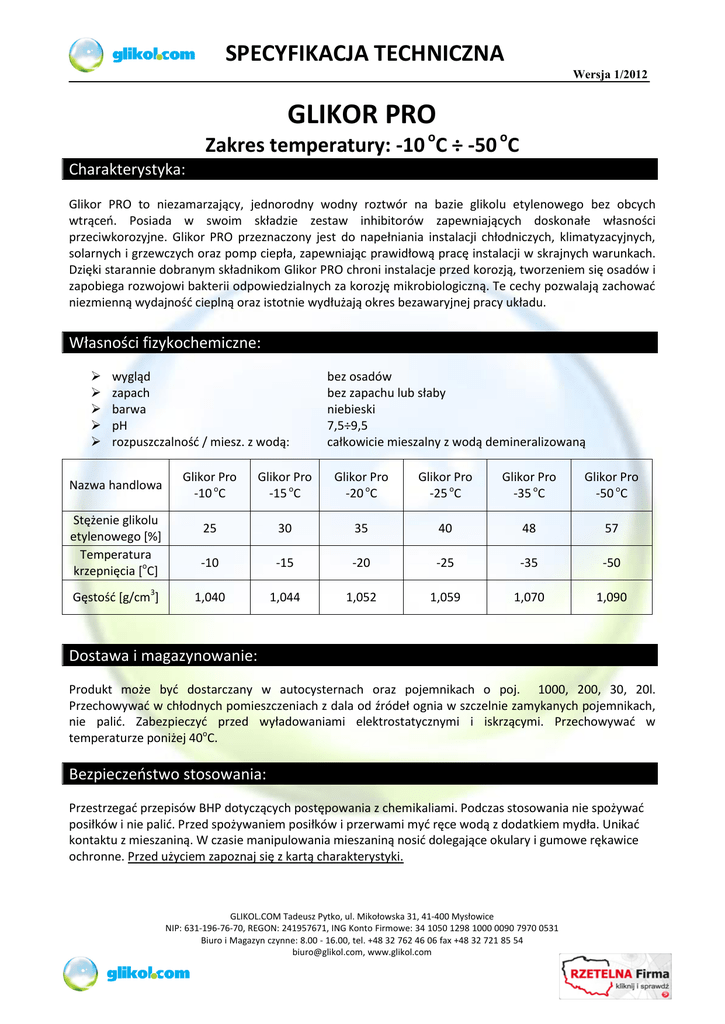 Załącznik nr 2 do OPZ- karta charakterystyki glikolu 35 procent