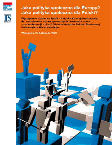 Tłumaczenie na język polski: Emilia Jaroszewska Wydawca: Fundacja im. Friedricha Eberta, Przedstawicielstwo w Polsce Nieodpłatna dystrybucja: Fundacja im. Friedricha Eberta, Przedstawicielstwo w Polsce ul. Podwale 11, 00-252 Warszawa © 2008 Fundacja im. Friedricha Eberta, Przedstawicielstwo w Polsce ul. Podwale 11, 00-252 Warszawa Skład i łamanie: Luiza Wojciechowska-Konopka Fotografie: Jarosław Brzeziński Drukarnia: Relex Wszelkie prawa zastrzeżone Printed in Poland 2008 ISBN 9788386088843 Jaka polityka społeczna dla Europy? Jaka polityka społeczna dla Polski? Wstęp „Jaka polityka społeczna dla Europy? Jaka polityka społeczna dla Polski?”, te dwa pytania, a raczej próby odpowiedzi na nie, stały się tematem przewodnim międzynarodowej konferencji naukowej, która odbyła się 23 listopada 2007 roku. Zgromadziła ona w Sali Senatu Uniwersytetu Warszawskiego ok. 200 ekspertów, naukowców, partnerów społecznych, polityków, dziennikarzy oraz inne osoby zajmujące się polityką społeczną. Impulsem do zorganizowania konferencji było 30lecie Instytutu Polityki Społecznej Uniwersytetu Warszawskiego, wiodącego ośrodka akademickiego w Polsce, zajmującego się od lat 70-tych nie tylko badaniami, ale i dydaktyką w zakresie polityki społecznej. Kształtowanie myśli społecznej oraz poprawa jakości życia, to główne wyzwania, które istniały zarówno na początku istnienia IPS, jak i obecnie, w nowym systemie gospodarczym. Pierwszym mówcą, który zmierzył się z odpowiedzią na pytanie o wizję polityki społecznej w Europie był gość honorowy konferencji, Członek Komisji Europejskiej, dr Vladimir Špidla, który wygłosił wykład pt. „Główne wyzwania stojące przed polityką społeczną XXI wieku”. Podkreślił on, iż obecną politykę społeczną należy postrzegać w kontekście wyzwań globalizacji, zmian technologicznych i demograficznych. Polityka społeczna musi dawać adekwatne odpowiedzi do zmieniających się warunków i potrzeb obywateli, szczególnie w UE, gdzie wartości społeczne są jednym z filarów jej funkcjonowania. Zwiększone inwestycje w edukację, wypracowanie standardów współpracy między światem nauki i gospodarki, lepsze wykorzystywanie zasobów ludzkich, w tym wykorzystywanie doświadczenia ludzi starszych w kierunku zwiększania ich aktywności na rynku pracy, czy oszczędne gospodarowanie energią i zrównoważony rozwój środowiskowy to niektóre odpowiedzi na obecne globalne wyzwania, przed którymi stoi europejski model społeczny. W zgodnej opinii uczestników wystąpienie Komisarza było niezmiernie interesujące i opinia ta stała się podstawą do decyzji o wydrukowaniu niniejszej publikacji, w której znajduje się niemieckie i polskie tłumaczenie pełnego wystąpienia Vladimira Špidli. Kolejnym mówcą był Członek Parlamentu Europejskiego, Harald Etll, który podzielił się z uczestnikami swoją wizją europejskiego modelu społecznego. Jego zdaniem egoizm i nacjonalizm, albo to, co nazwał on bycie hobby-Europejczykiem, nie jest efektywną drogą do wypełniania swoich zobowiązań wobec standardów „socjalnej Europy”. W praktyce ważne bowiem są nie tylko zapisy ramowe w kwestiach polityki społecznej, które istnieją w UE już od 30 lat, ale ich wykorzystywanie w praktyce politycznej każdego z krajów. Okazją do prezentacji praktycznej strony realizacji polityki społecznej, tym razem w Polsce, był panel byłych ministrów pracy i polityki społecznej poświęcony właśnie praktycznym rozwiązaniom z zakresu polityki społecznej i uwarunkowaniom transformacji w okresie ostatnich 15 lat. Pomimo odbywającego się w tym samym czasie exposé Premiera Donalda Tuska cieszył się on bardzo dużym zainteresowaniem. W panelu uczestniczyli dr Michał Boni, Joanna Kluzik-Rostkowska, Krzysztof Michałkiewicz, Leszek Miller oraz Krzysztof Pater. Bezpośrednio przed panelem list od Minister Pracy i Polityki Społecznej Jolanty Fedak odczytała Podsekretarz Stanu w Ministerstwie Pracy i Polityki Społecznej Czesława Ostrowska. Moderatorem panelu była prof. dr hab. Małgorzata Szylko-Skoczny. Tendencją ogólną, którą potwierdzili kolejni ministrowie zabierający glos w dyskusji, było wycofywanie się państwa z przypisywanych sobie w ustroju socjalistycznym roli w realizacji polityki społecznej, jej decentralizacja oraz urynkowienie. W tym kontekście historycznym polityka społeczna miała do odegrania w ciągu ostatnich 15 lat różne role począwszy od bufora zmian systemowych, w tym dla osób odchodzących z rynku pracy, poprzez stworzenie systemu zabezpieczenia społecznego, wypracowanie mechanizmu dialogu społecznego, stworzenie organizacji pracodawców, budowanie podwalin nowej polityki prorodzinnej oraz w końcu podjęcie nowej roli w polityce społecznej po roku 2004, aktywnej, a nie skierowanej jedynie na bierne wsparcie osób bezrobotnych i zagrożonych marginalizacją. Kolejną okazją do dyskusji był panel dyskusyjny pt. „Polityka społeczna przyszłości: perspektywy, wyzwania, prognozy”, w którym uczestniczyli: prof. dr hab. Ludmiła Dziewięcka-Bokuń, prof. dr hab. Andrzej Rączaszek, prof. dr hab. Jolanta Supińska, prof. dr hab. Tadeusz Szumlicz, dr Ryszard Szarfenberg. Moderowania panelu podjął się prof. dr hab. Julian Auleytner. Paneliści dowodzili m.in., iż transformacja gospodarcza w dużym stopniu już się powiodła, natomiast transformacja systemowa jest w Polsce nadal w toku. Jednak uwarunkowania systemowe i społeczne zmieniły się w porównaniu do lat 90-tych i obecnie jest pora, aby wypracowywać nowe podejście do roli polityki społecznej w trwającej transformacji systemowej. Polityka społeczna powinna stać się CZYNNIKIEM rozwoju, a nie tylko pełnić funkcje osłonowe, zależne od kondycji gospodarki. W Polsce szczególnie regiony peryferyjne potrzebują polityki wyrównywania szans, dającej instrumenty dostosowania do standardów europejskich