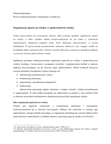 Organizacje oparte na wiedzy w społeczeństwie - E